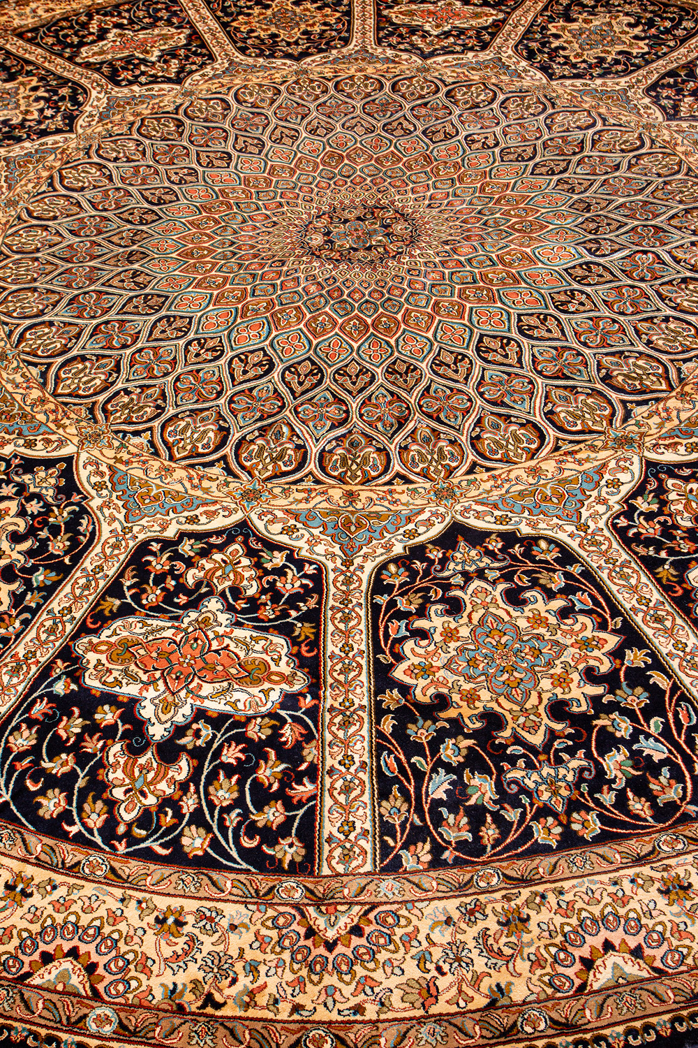 Гармония цвета и изображения придаёт коврам из коллекции Кашмир классическую выразительность, а шёлк в составе — яркие переливы блеска.