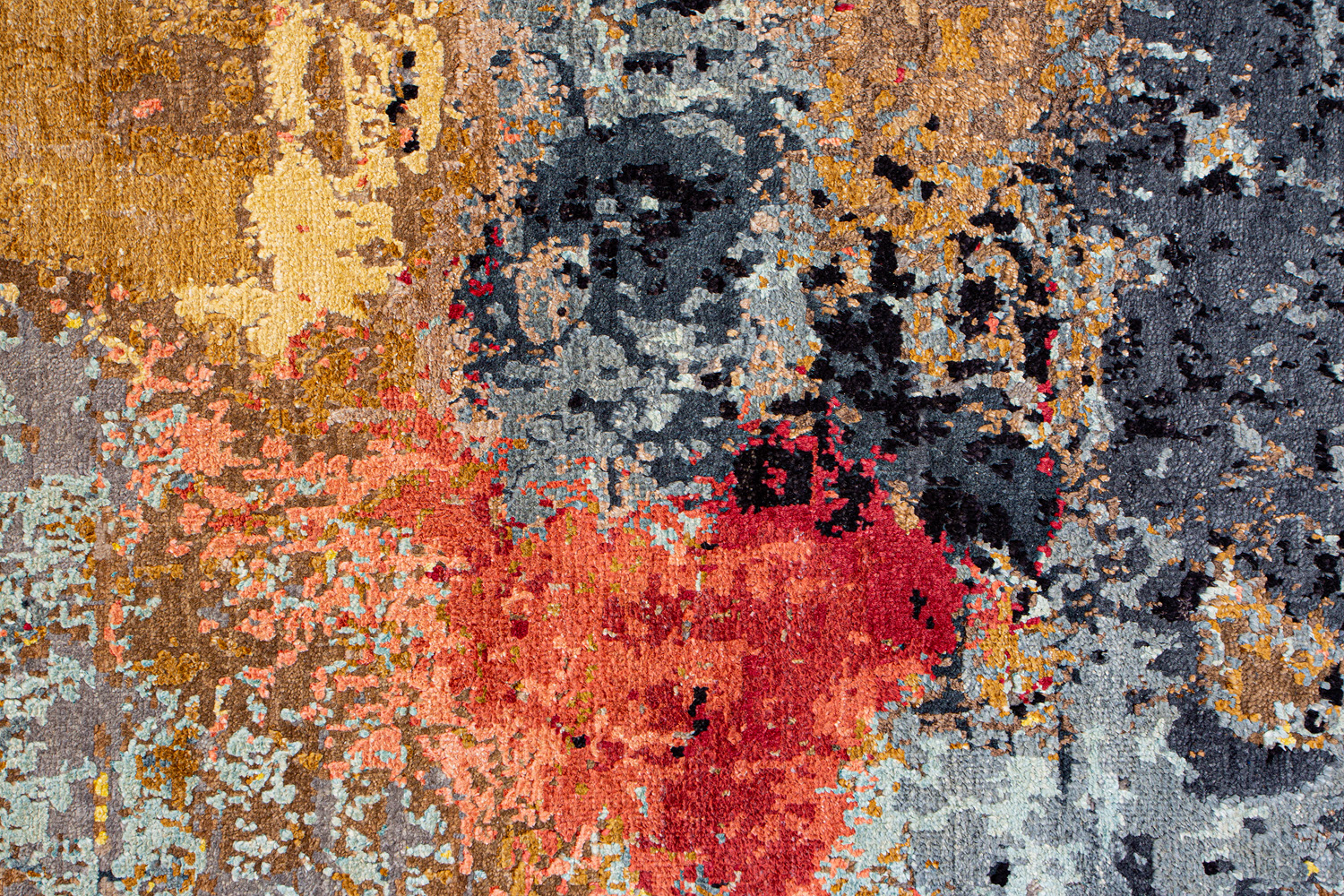 Дизайн ковров напоминает современные полотна художников-абстракционистов и производит столь же яркое и незабываемое впечатление в интерьере. Живописный эффект и необычная фактура зависят от выбора материала: натуральной шерсти, шёлка и от их сочетаний друг с другом. Ковры ткутся вручную в лучших мастерских Индии и Пакистана.