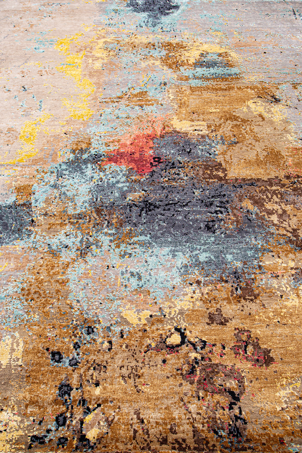 Дизайн ковров напоминает современные полотна художников-абстракционистов и производит столь же яркое и незабываемое впечатление в интерьере. Живописный эффект и необычная фактура зависят от выбора материала: натуральной шерсти, шёлка и от их сочетаний друг с другом. Ковры ткутся вручную в лучших мастерских Индии и Пакистана.