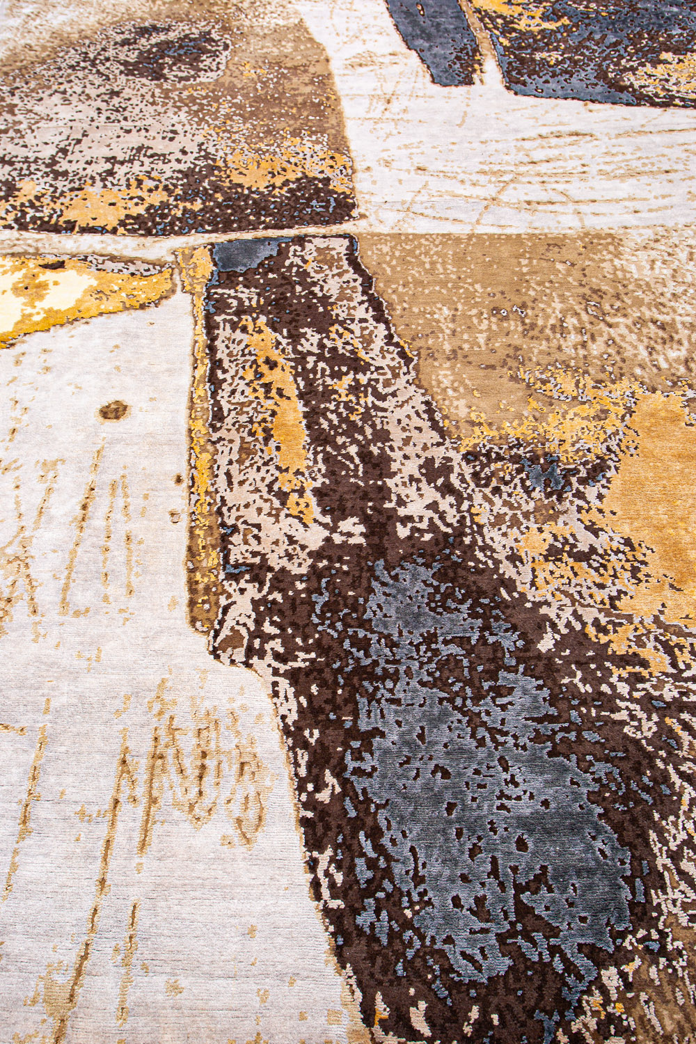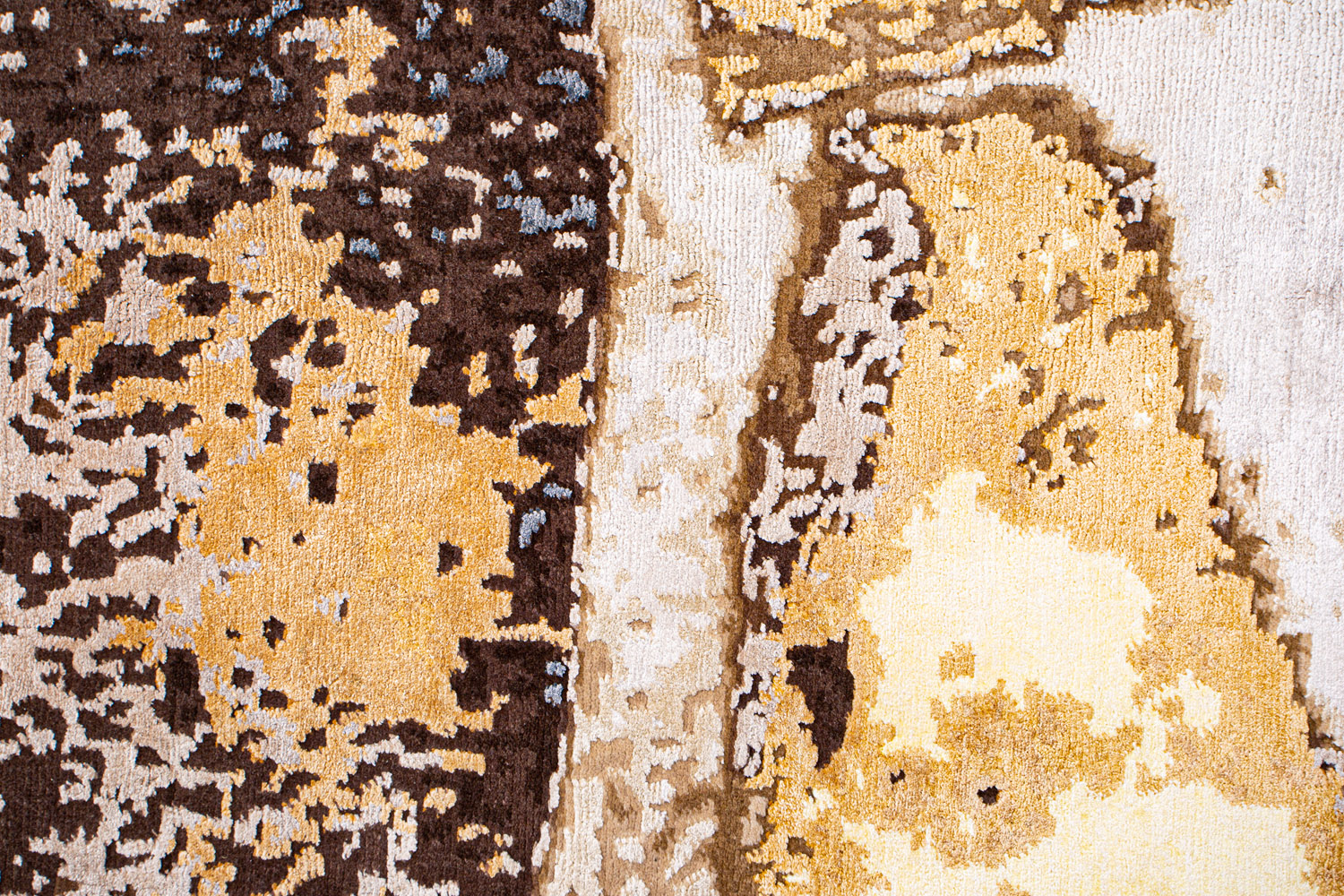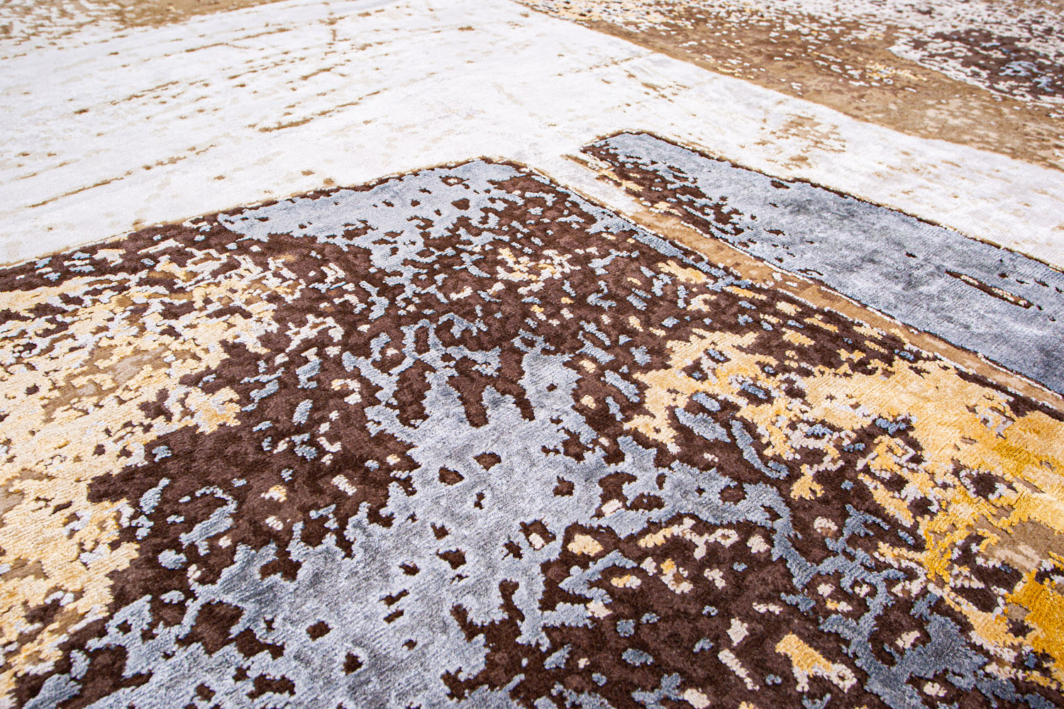 Дизайн ковров напоминает современные полотна художников-абстракционистов и производит столь же яркое и незабываемое впечатление в интерьере. Живописный эффект и необычная фактура зависят от выбора материала: натуральной шерсти, шёлка и от их сочетаний друг с другом. Ковры ткутся вручную в лучших мастерских Индии и Пакистана.