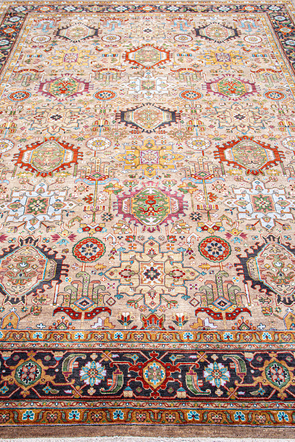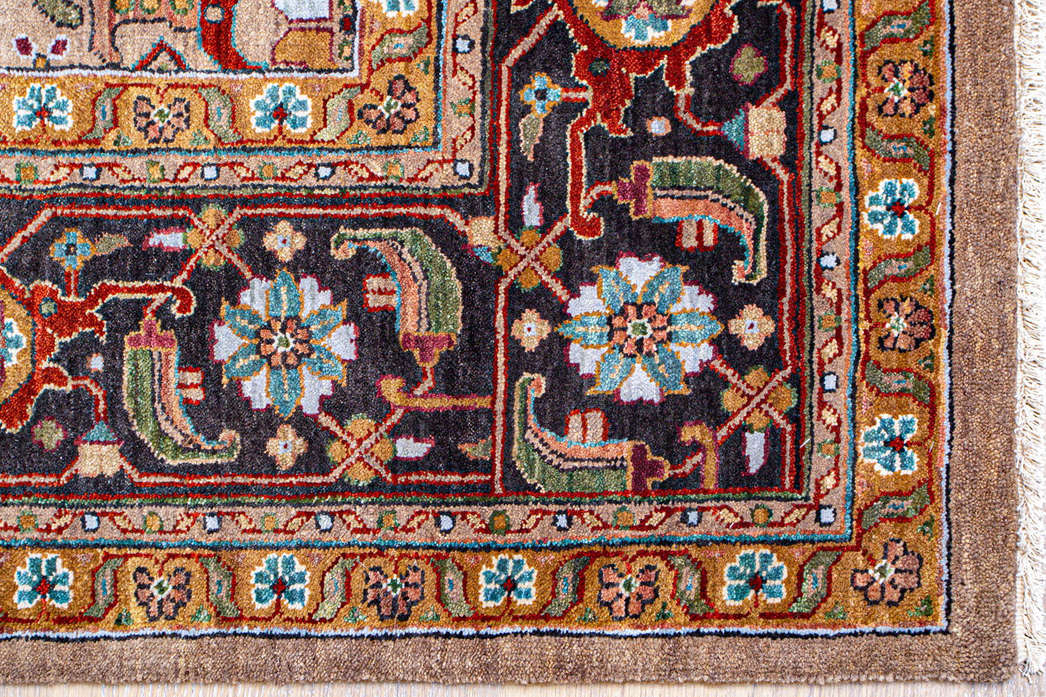 Более пяти веков назад в городе Агра зародилась знаменитая индийская школа ковроткачества, прославившаяся не меньше, чем расположенный здесь же Тадж-Махал. Мощное персидское влияние, помноженное на местный колорит, привело к появлению оригинальных орнаментов с богатыми растительными узорами — причудливым цветам, ветвям и листьям, разбросанным по всему полю ковра.