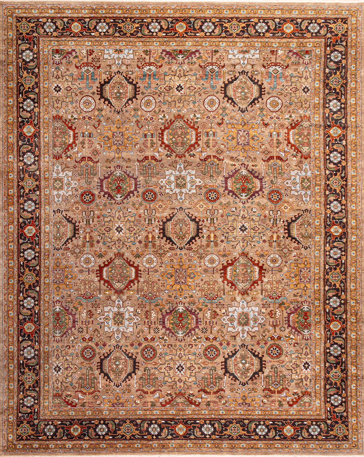 Каждый ковер в этой коллекции соткан вручную из шерсти и арт шёлка опытными индийскими мастерами.