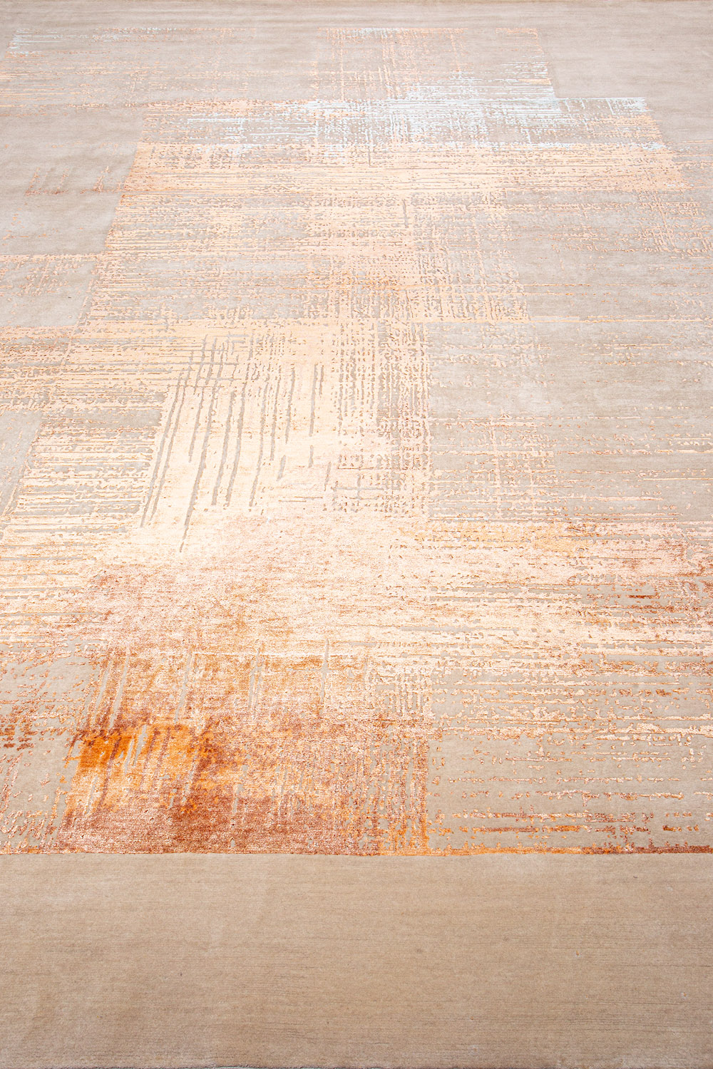 Дизайн ковров напоминает современные полотна художников-абстракционистов и производит столь же яркое и незабываемое впечатление в интерьере. Живописный эффект и необычная фактура зависят от выбора материала: натуральной шерсти, шёлка и от их сочетаний друг с другом. Ковры ткутся вручную в лучших мастерских Индии и Пакистана.