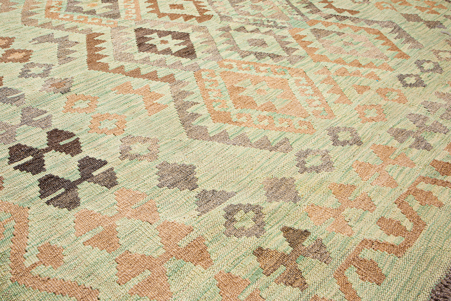 Узор ковров из коллекции Килим создаётся взаимодействием нитей утока и нитей основы, благодаря чему получается геометрический узор.