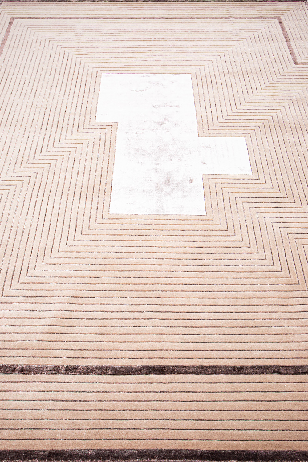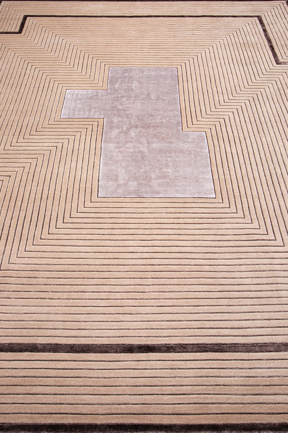 Крупные рисунки в виде линий и фигур на фактурной поверхности ковра превращаются в выразительные композиции. Они акцентируют на себе внимание и добавляют динамики в современный интерьер. Комбинации разных фигур и повторяющийся орнамент задают ритмическую основу пространству, привносят в него оригинальные оптические иллюзии.