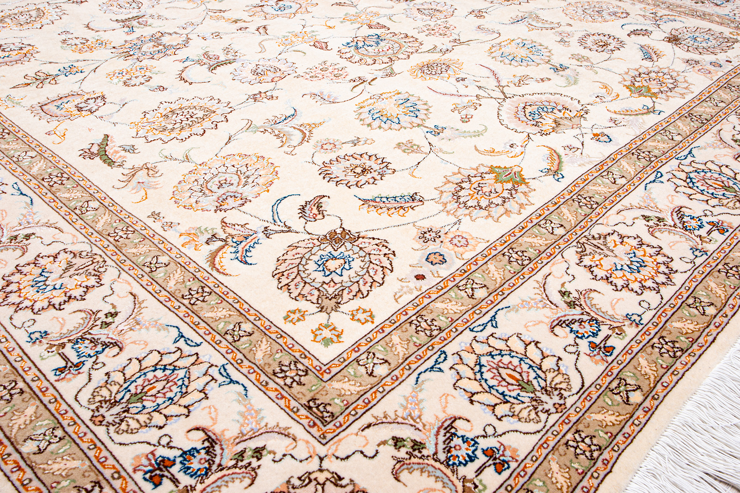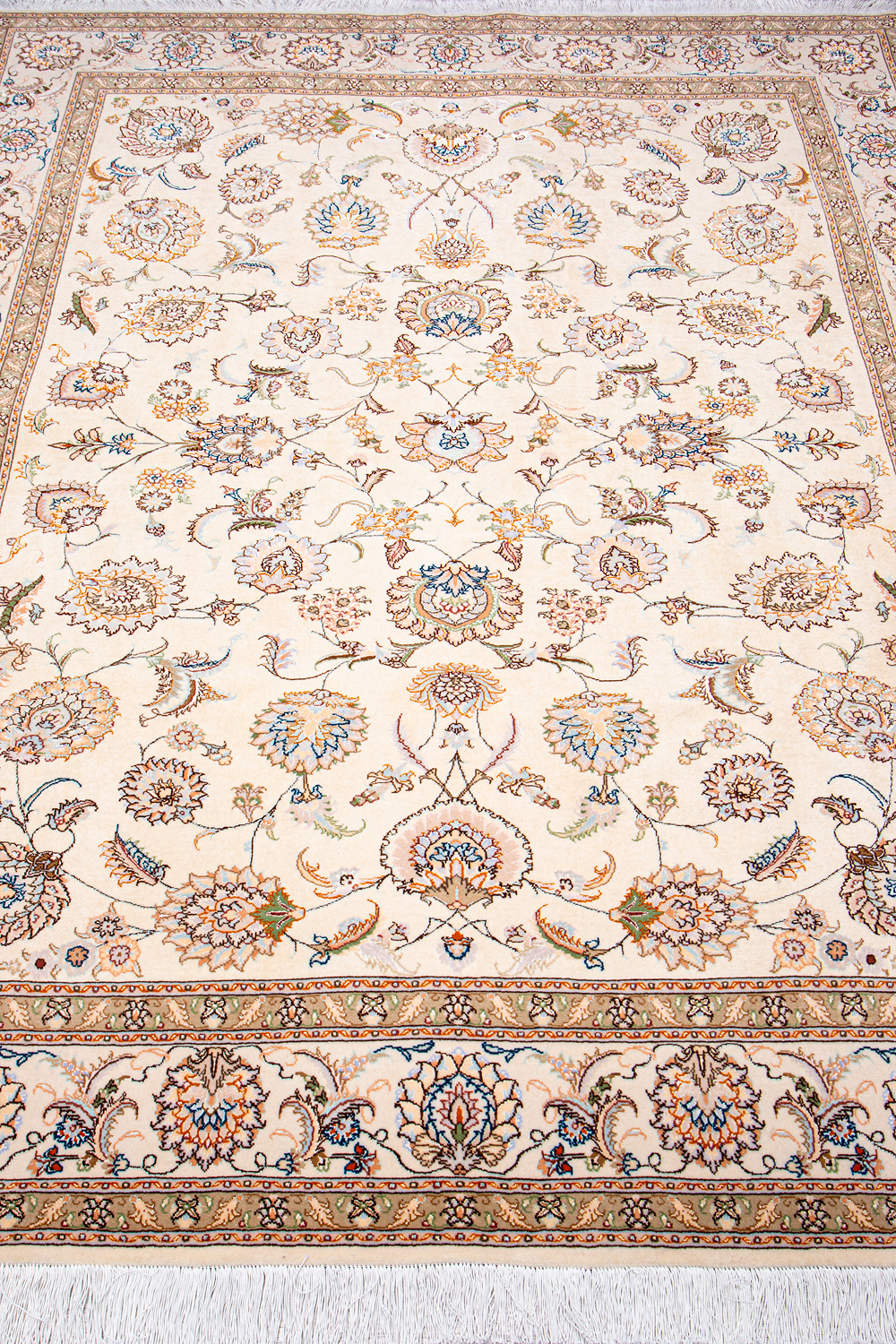 Рассыпанные по всему полю цветы, медальоны и «рыбная чешуя» — основные мотивы в дизайне ковров из коллекции Тебриз, а светлые тона и спокойные пастельные оттенки — основная цветовая палитра.