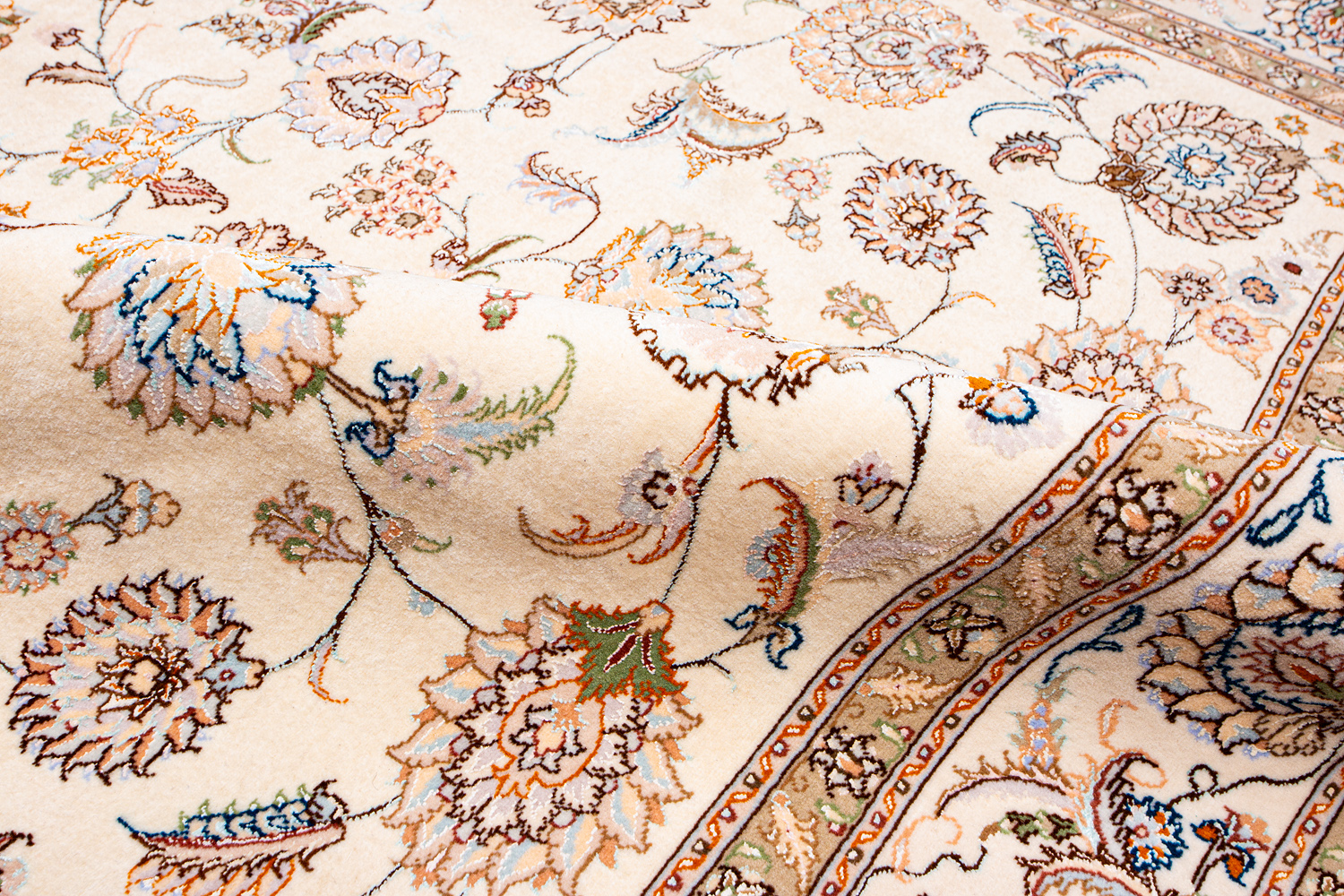Ковры ткутся из шерсти и шёлка лучшими мастерами Ирана несколько лет, ведь обладают высочайшей плотностью для подобного состава ворса в 600 тысяч узлов на квадратный метр.