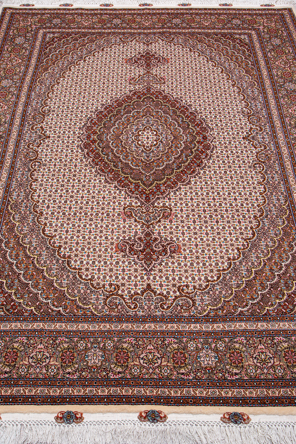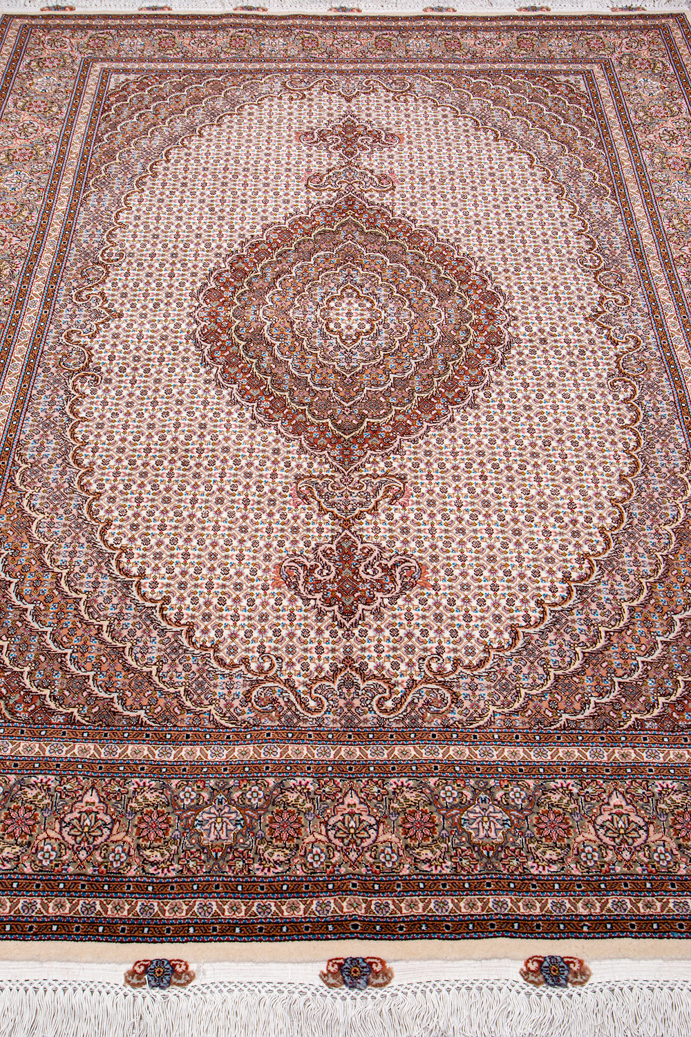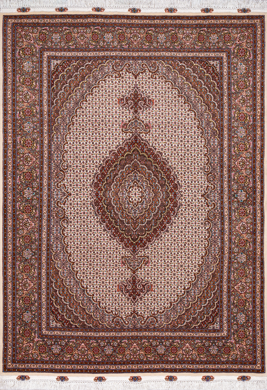 Рассыпанные по всему полю цветы, медальоны и «рыбная чешуя» — основные мотивы в дизайне ковров из коллекции Тебриз, а светлые тона и спокойные пастельные оттенки — основная цветовая палитра.