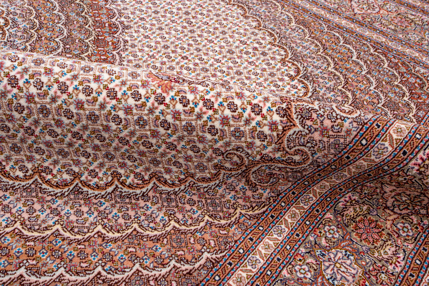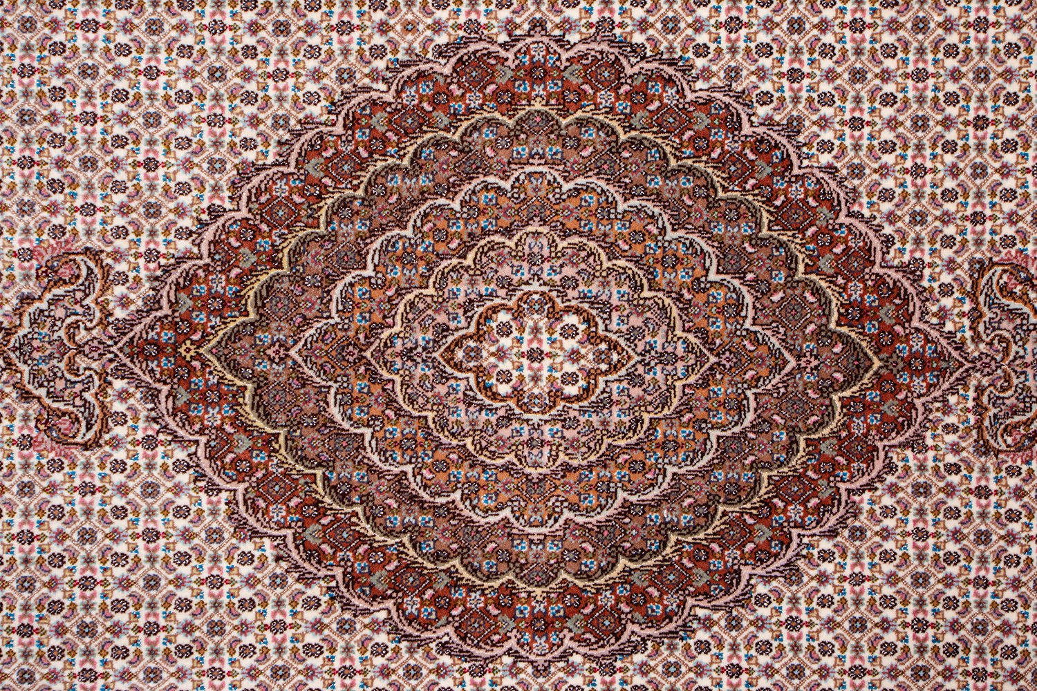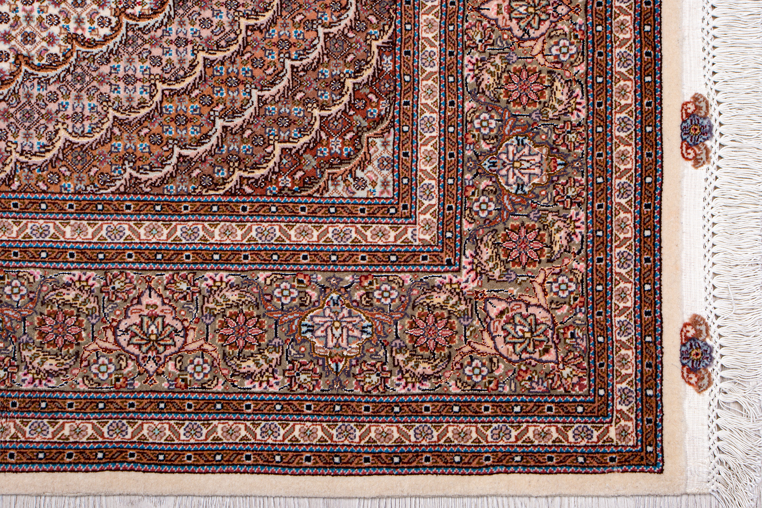 Рассыпанные по всему полю цветы, медальоны и «рыбная чешуя» — основные мотивы в дизайне ковров из коллекции Тебриз, а светлые тона и спокойные пастельные оттенки — основная цветовая палитра.