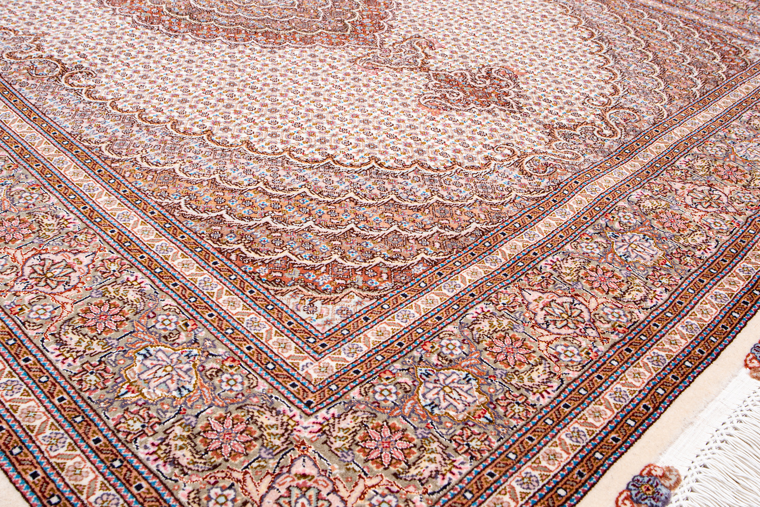 Ковры ткутся из шерсти и шёлка лучшими мастерами Ирана несколько лет, ведь обладают высочайшей плотностью для подобного состава ворса в 600 тысяч узлов на квадратный метр.