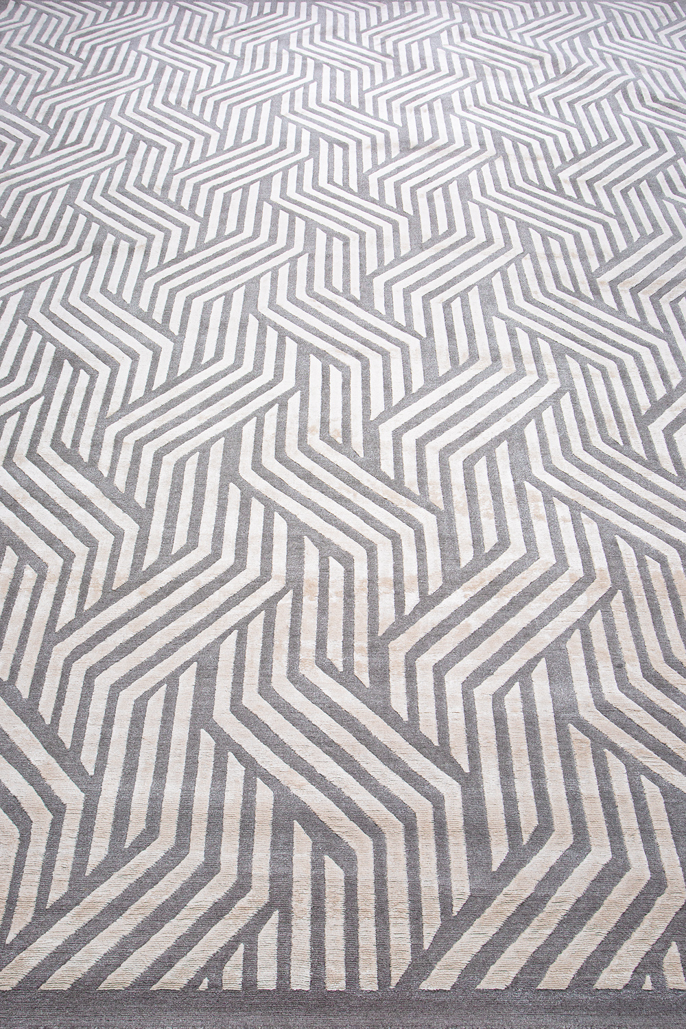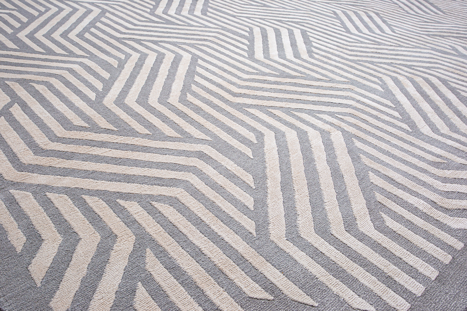 Крупные рисунки в виде линий и фигур на фактурной поверхности ковра превращаются в выразительные композиции. Они акцентируют на себе внимание и добавляют динамики в современный интерьер. Комбинации разных фигур и повторяющийся орнамент задают ритмическую основу пространству, привносят в него оригинальные оптические иллюзии.