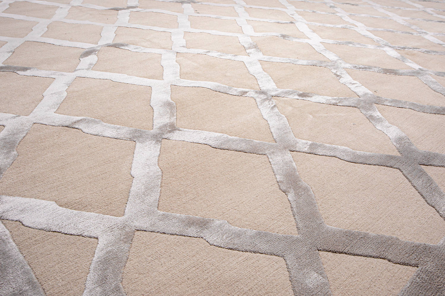 Крупные рисунки в виде линий и фигур на фактурной поверхности ковра превращаются в выразительные композиции. Они акцентируют на себе внимание и добавляют динамики в современный интерьер. Комбинации разных фигур и повторяющийся орнамент задают ритмическую основу пространству, привносят в него оригинальные оптические иллюзии.