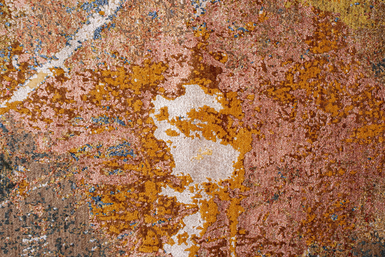 Дизайн ковров напоминает современные полотна художников-абстракционистов и производит столь же яркое и незабываемое впечатление в интерьере. Живописный эффект и необычная фактура зависят от выбора материала: натуральной шерсти, шёлка и от их сочетаний друг с другом. Ковры ткутся вручную в лучших мастерских Индии и Пакистана.