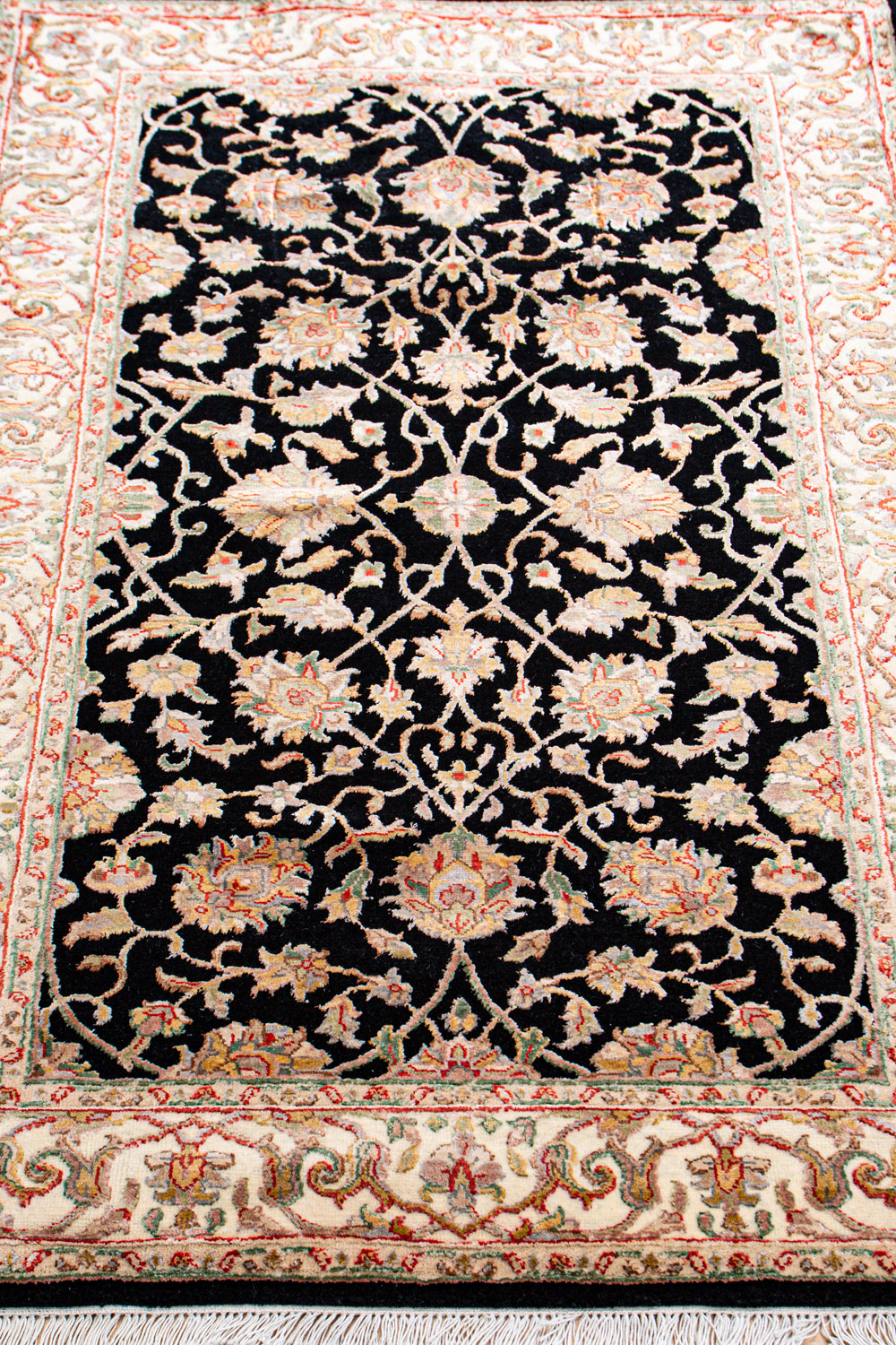 Более пяти веков назад в городе Агра зародилась знаменитая индийская школа ковроткачества, прославившаяся не меньше, чем расположенный здесь же Тадж-Махал. Мощное персидское влияние, помноженное на местный колорит, привело к появлению оригинальных орнаментов с богатыми растительными узорами — причудливым цветам, ветвям и листьям, разбросанным по всему полю ковра.