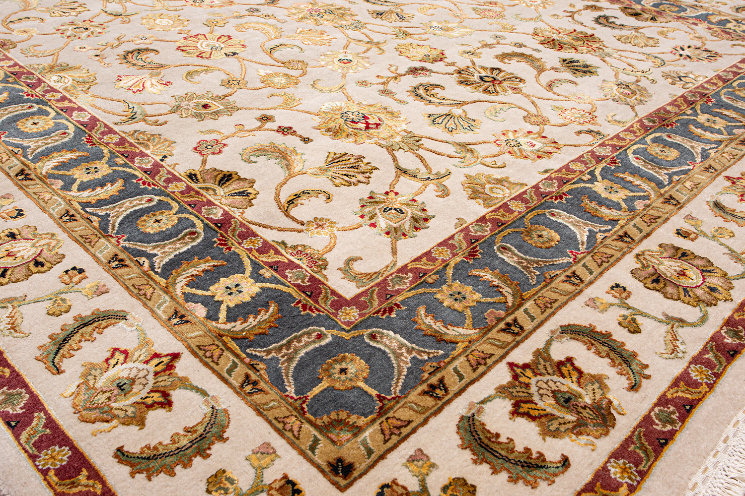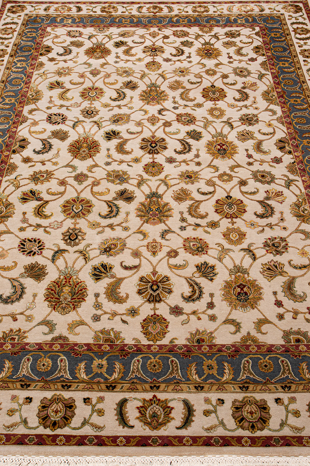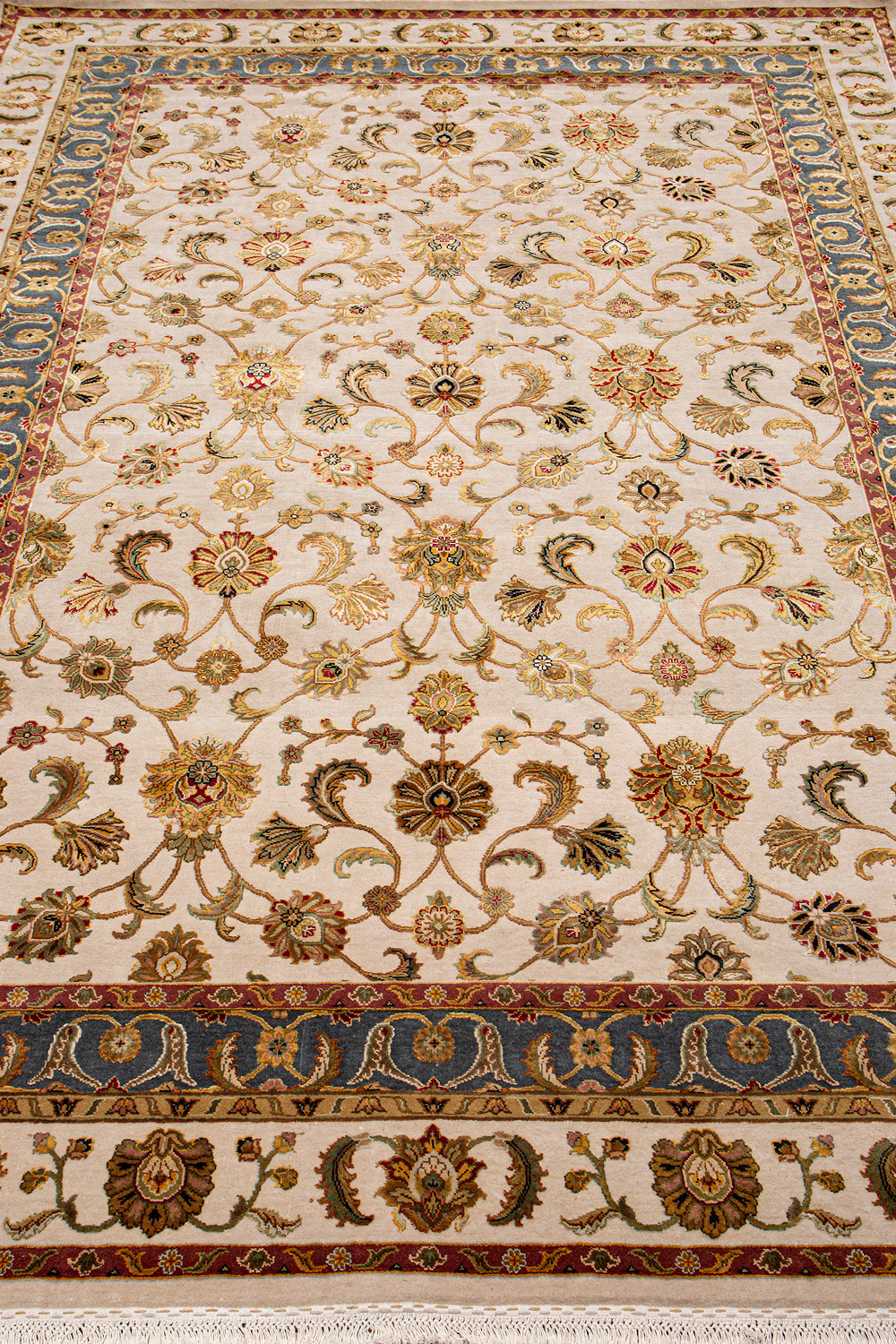 Более пяти веков назад в городе Агра зародилась знаменитая индийская школа ковроткачества, прославившаяся не меньше, чем расположенный здесь же Тадж-Махал. Мощное персидское влияние, помноженное на местный колорит, привело к появлению оригинальных орнаментов с богатыми растительными узорами — причудливым цветам, ветвям и листьям, разбросанным по всему полю ковра.