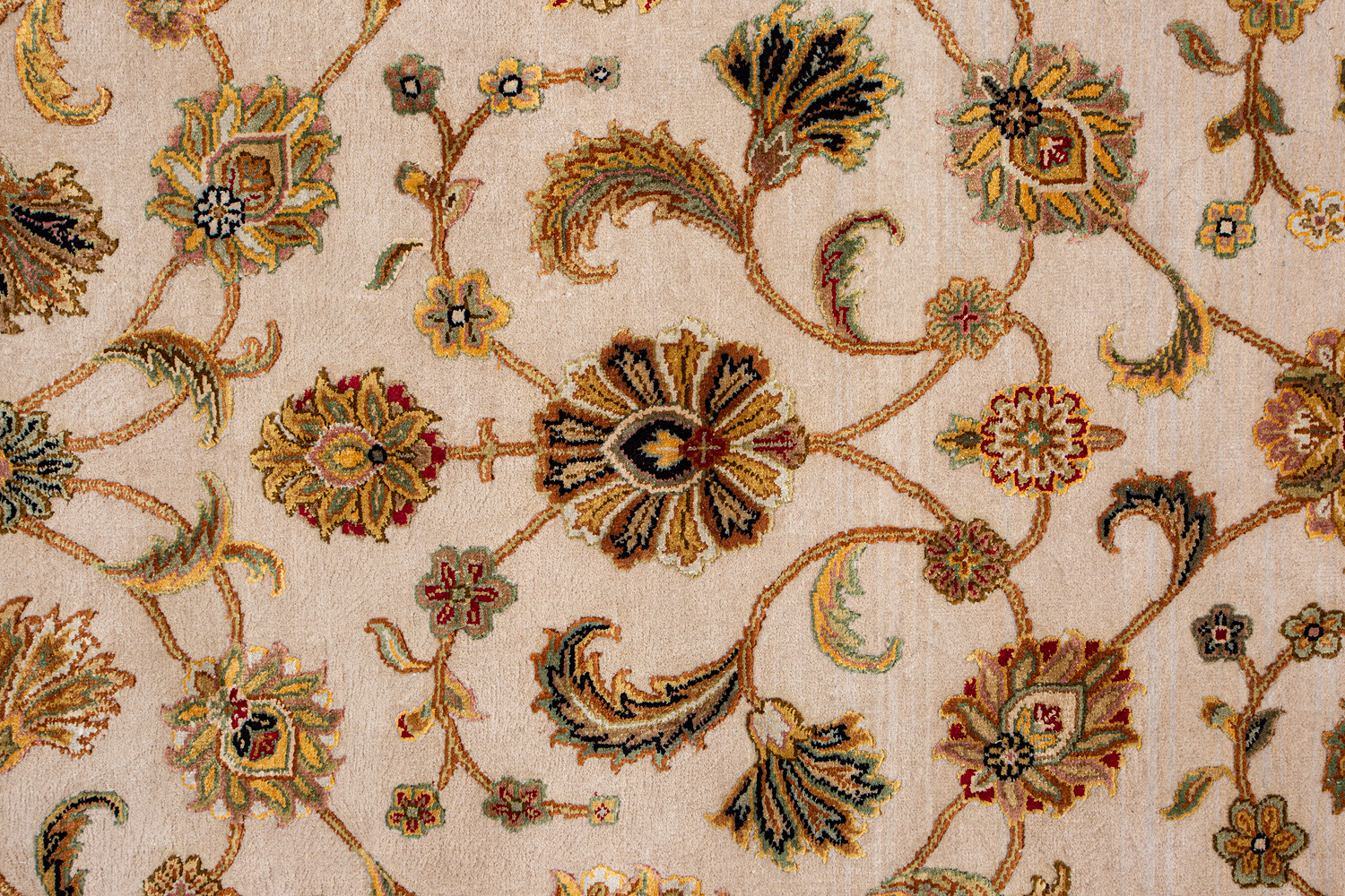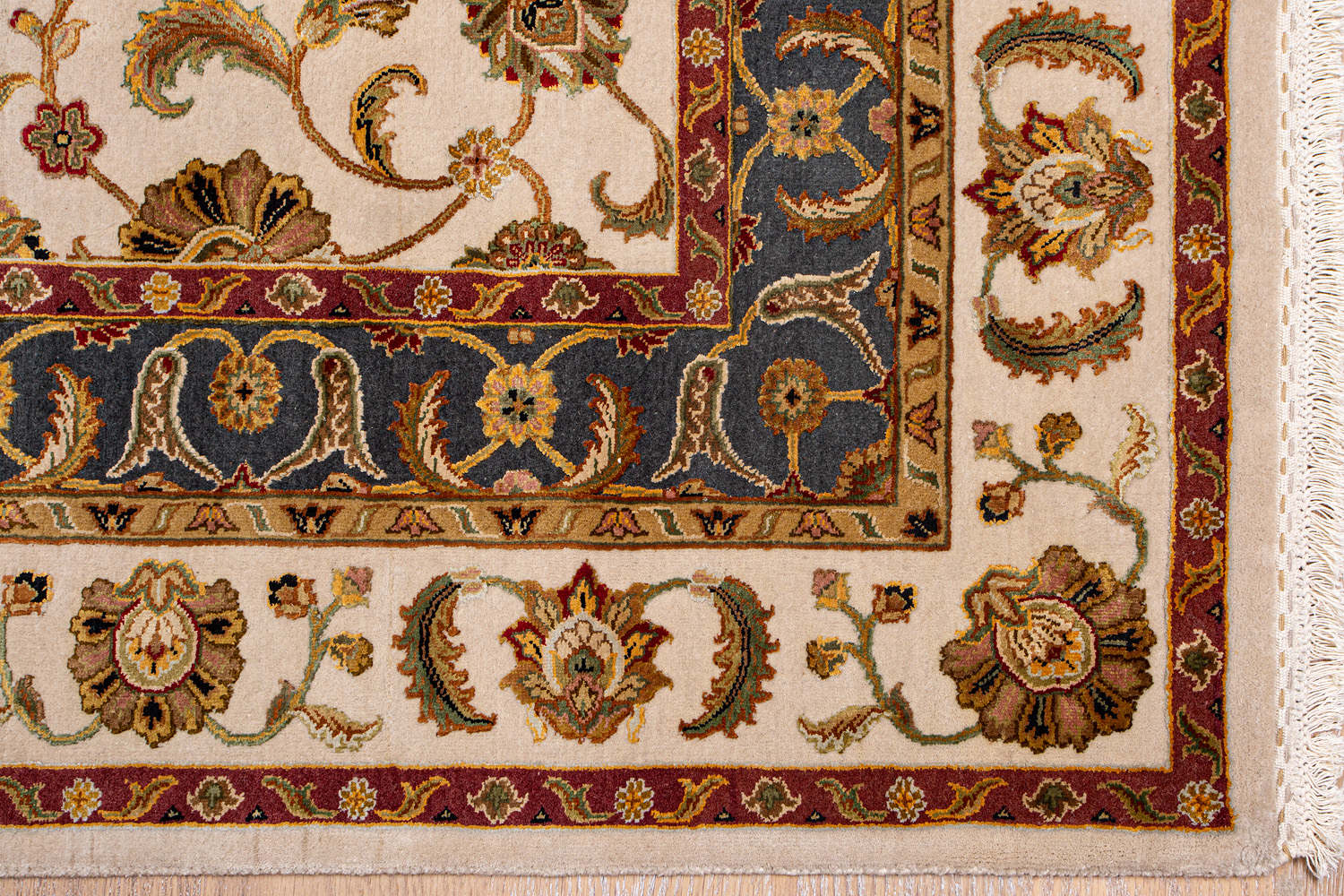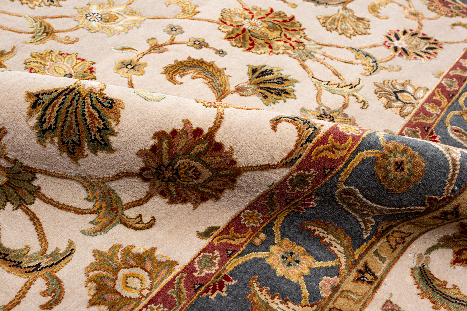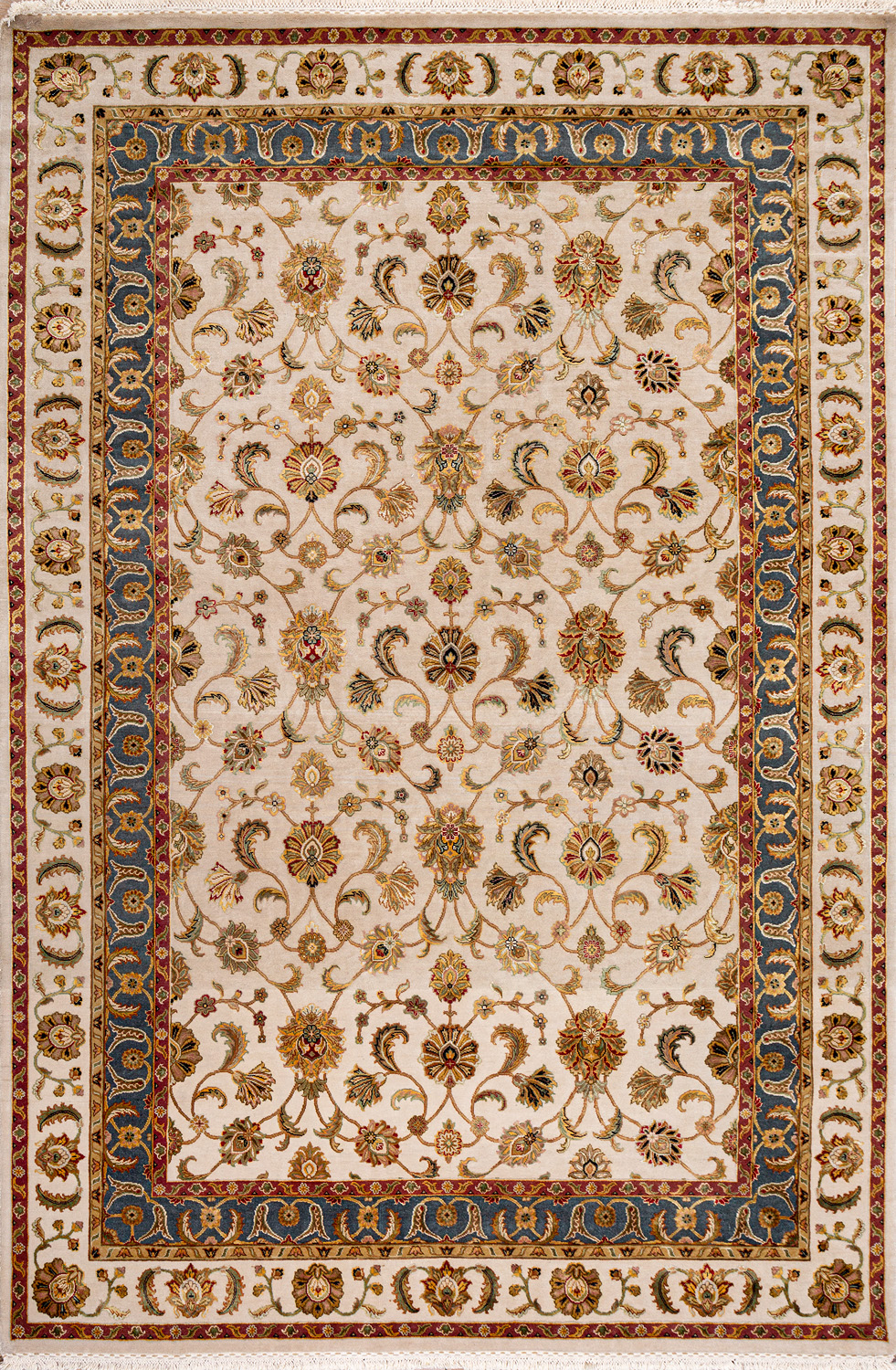 Более пяти веков назад в городе Агра зародилась знаменитая индийская школа ковроткачества, прославившаяся не меньше, чем расположенный здесь же Тадж-Махал. Мощное персидское влияние, помноженное на местный колорит, привело к появлению оригинальных орнаментов с богатыми растительными узорами — причудливым цветам, ветвям и листьям, разбросанным по всему полю ковра.