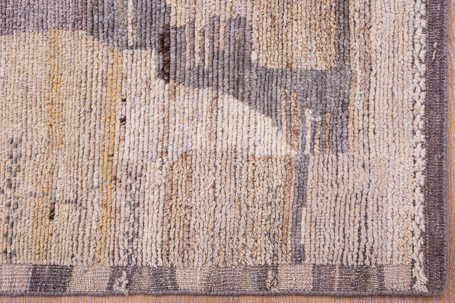 Дизайн ковров напоминает современные полотна художников-абстракционистов и производит столь же яркое и незабываемое впечатление в интерьере. Живописный эффект и необычная фактура зависят от выбора материала: натуральной шерсти, шёлка и от их сочетаний друг с другом. Ковры ткутся вручную в лучших мастерских Индии и Пакистана.