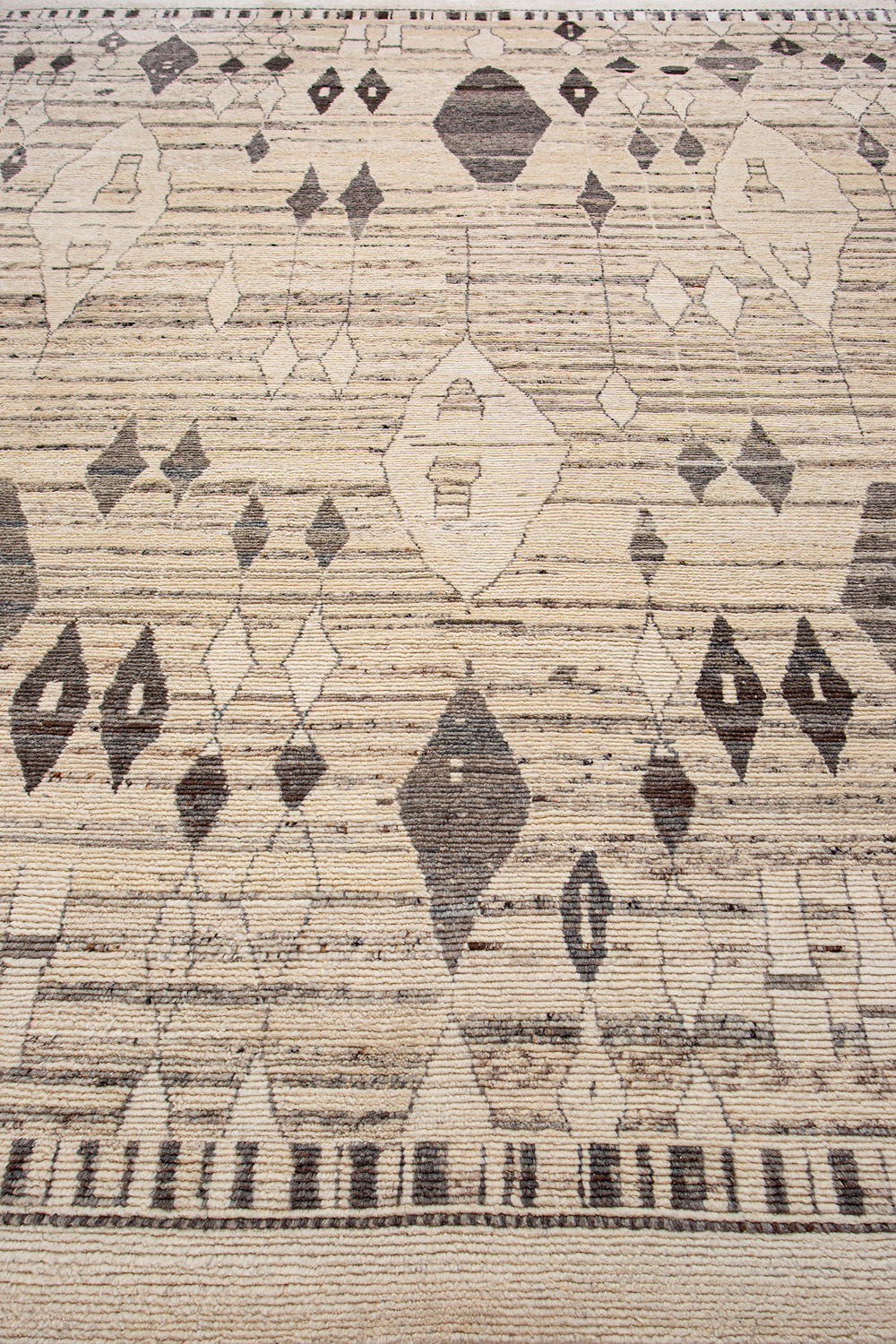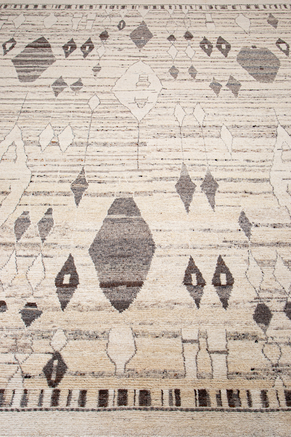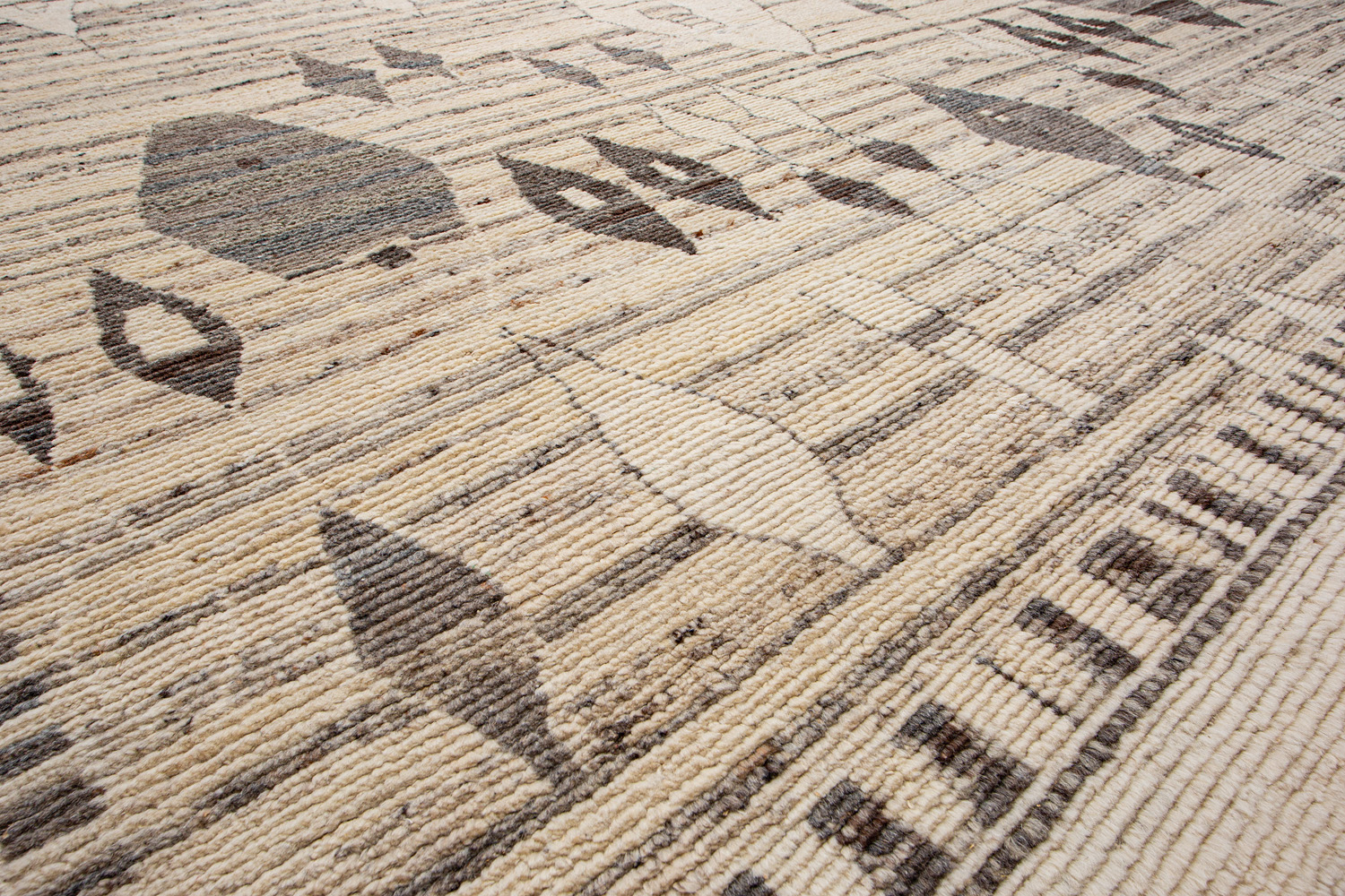 Дизайн ковров напоминает современные полотна художников-абстракционистов и производит столь же яркое и незабываемое впечатление в интерьере. Живописный эффект и необычная фактура зависят от выбора материала: натуральной шерсти, шёлка и от их сочетаний друг с другом. Ковры ткутся вручную в лучших мастерских Индии и Пакистана.