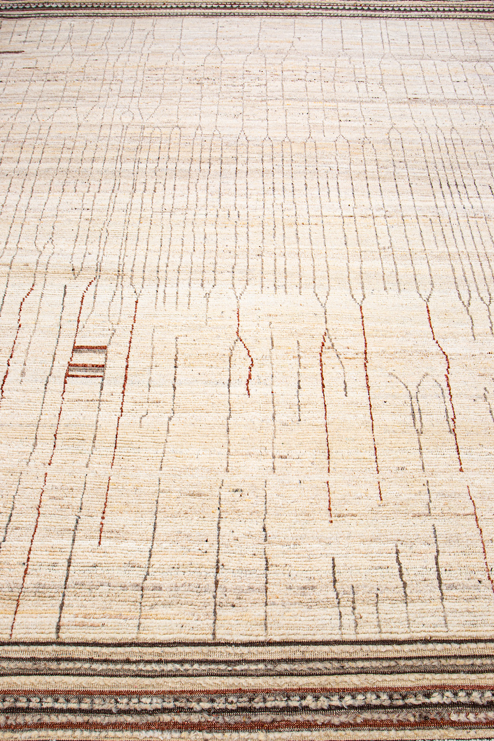 Дизайн ковров напоминает современные полотна художников-абстракционистов и производит столь же яркое и незабываемое впечатление в интерьере. Живописный эффект и необычная фактура зависят от выбора материала: натуральной шерсти, шёлка и от их сочетаний друг с другом. Ковры ткутся вручную в лучших мастерских Индии и Пакистана.