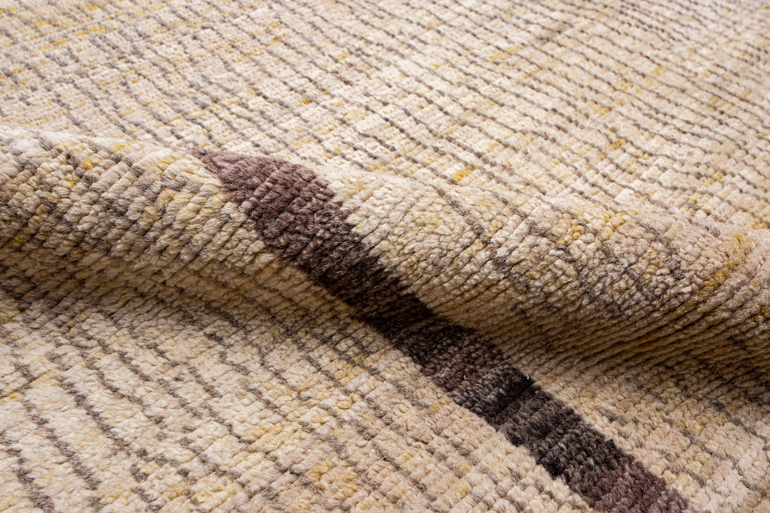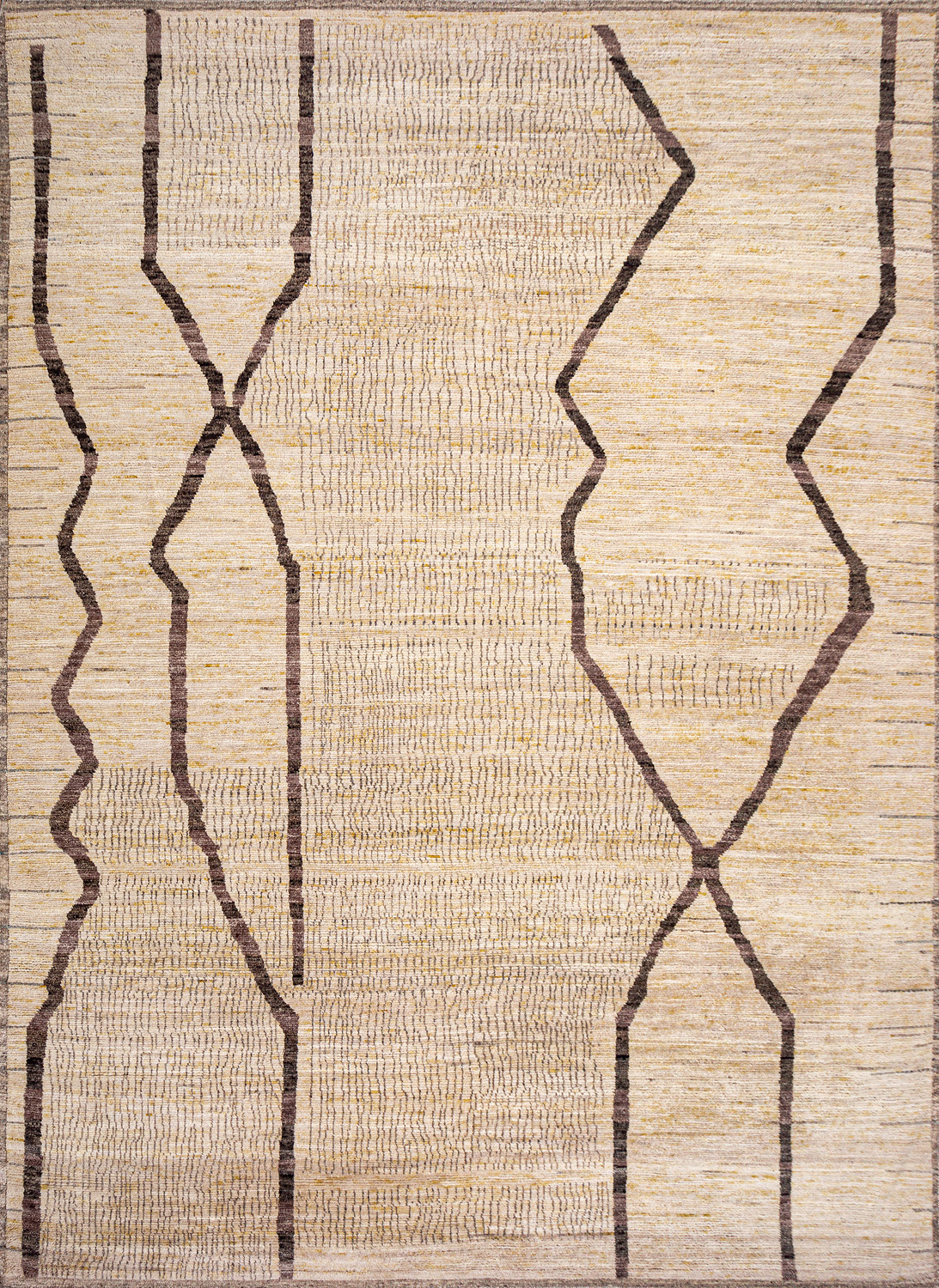Дизайн ковров напоминает современные полотна художников-абстракционистов и производит столь же яркое и незабываемое впечатление в интерьере. Живописный эффект и необычная фактура зависят от выбора материала: натуральной шерсти, шёлка и от их сочетаний друг с другом. Ковры ткутся вручную в лучших мастерских Индии и Пакистана.