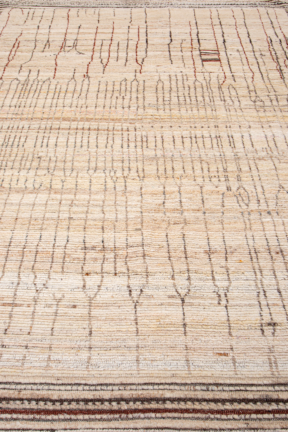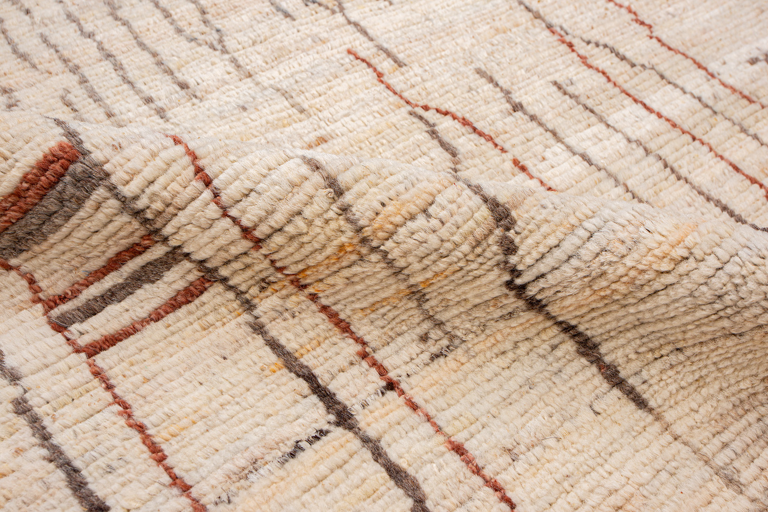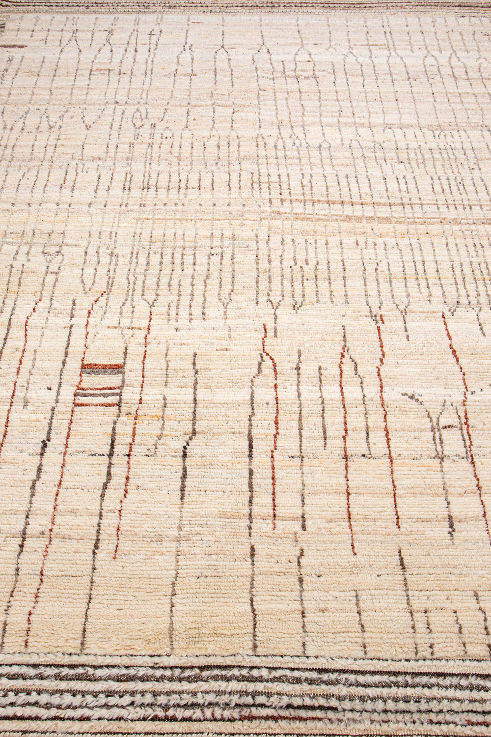 Дизайн ковров напоминает современные полотна художников-абстракционистов и производит столь же яркое и незабываемое впечатление в интерьере. Живописный эффект и необычная фактура зависят от выбора материала: натуральной шерсти, шёлка и от их сочетаний друг с другом. Ковры ткутся вручную в лучших мастерских Индии и Пакистана.