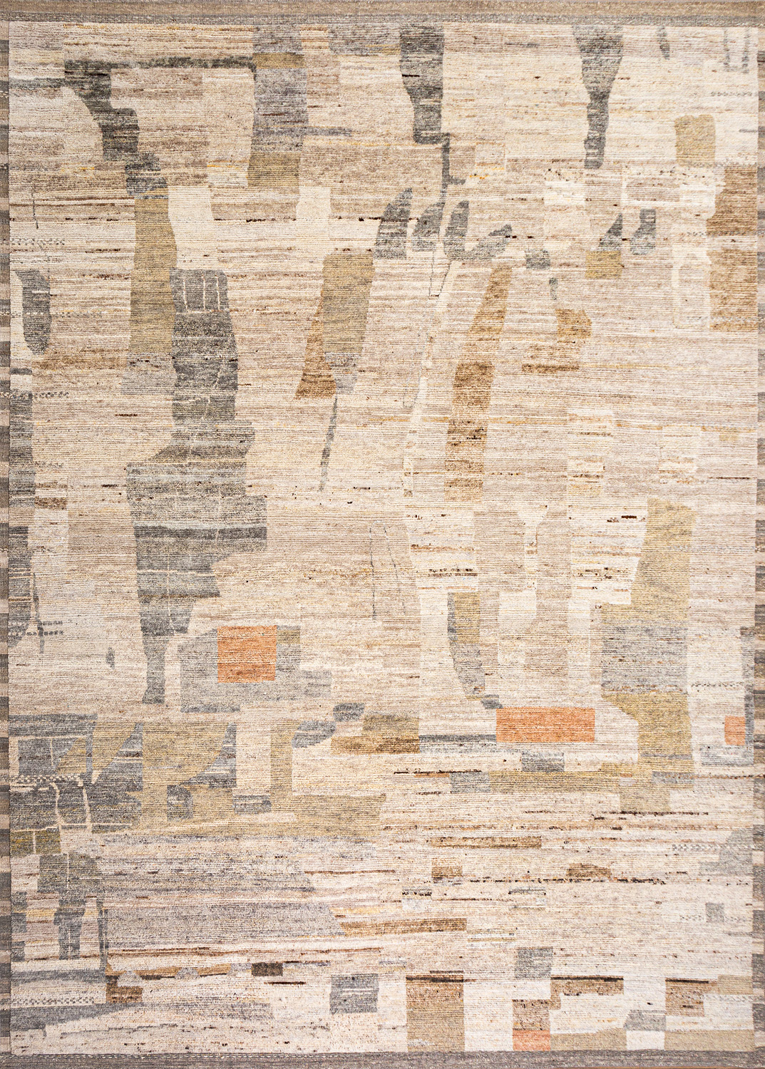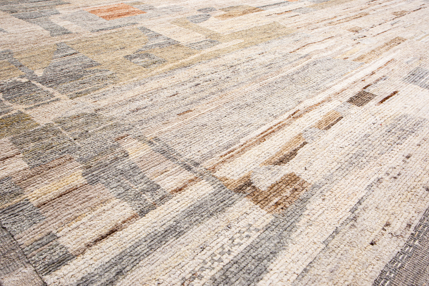 Дизайн ковров напоминает современные полотна художников-абстракционистов и производит столь же яркое и незабываемое впечатление в интерьере. Живописный эффект и необычная фактура зависят от выбора материала: натуральной шерсти, шёлка и от их сочетаний друг с другом. Ковры ткутся вручную в лучших мастерских Индии и Пакистана.