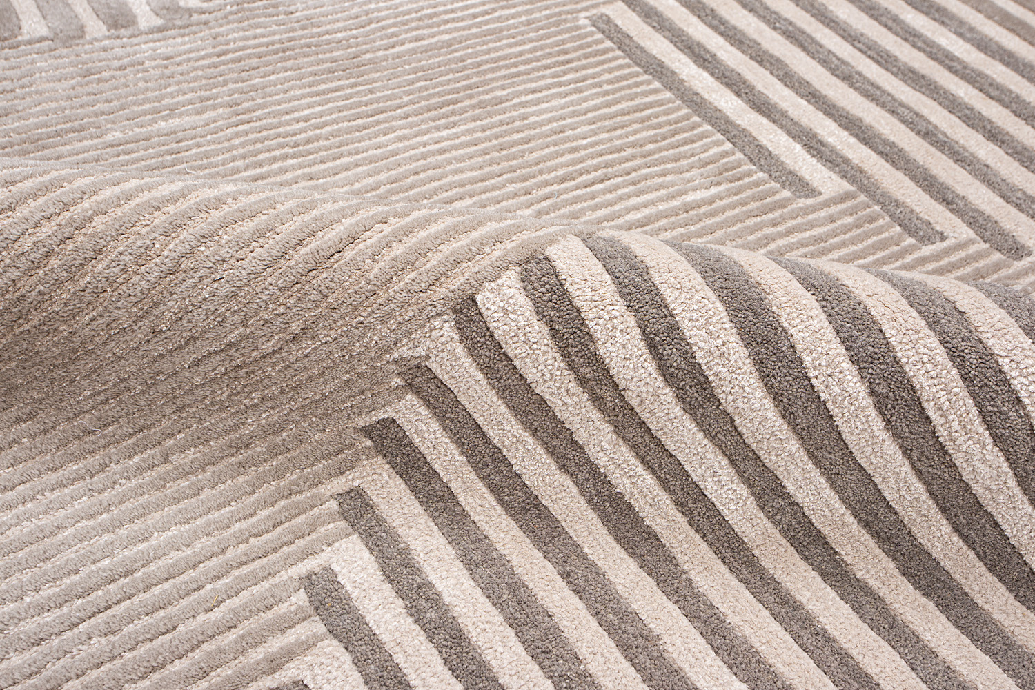 Крупные рисунки в виде линий и фигур на фактурной поверхности ковра превращаются в выразительные композиции. Они акцентируют на себе внимание и добавляют динамики в современный интерьер. Комбинации разных фигур и повторяющийся орнамент задают ритмическую основу пространству, привносят в него оригинальные оптические иллюзии.
