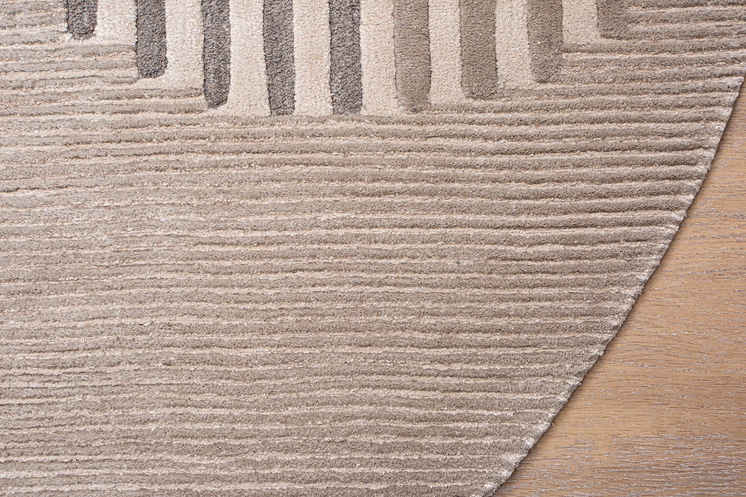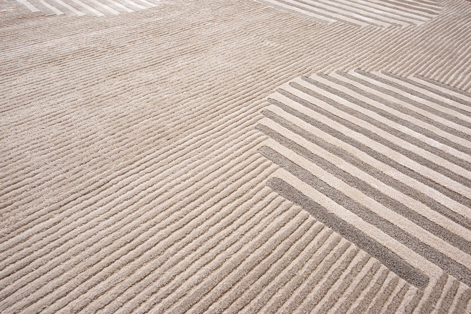 Крупные рисунки в виде линий и фигур на фактурной поверхности ковра превращаются в выразительные композиции. Они акцентируют на себе внимание и добавляют динамики в современный интерьер. Комбинации разных фигур и повторяющийся орнамент задают ритмическую основу пространству, привносят в него оригинальные оптические иллюзии.