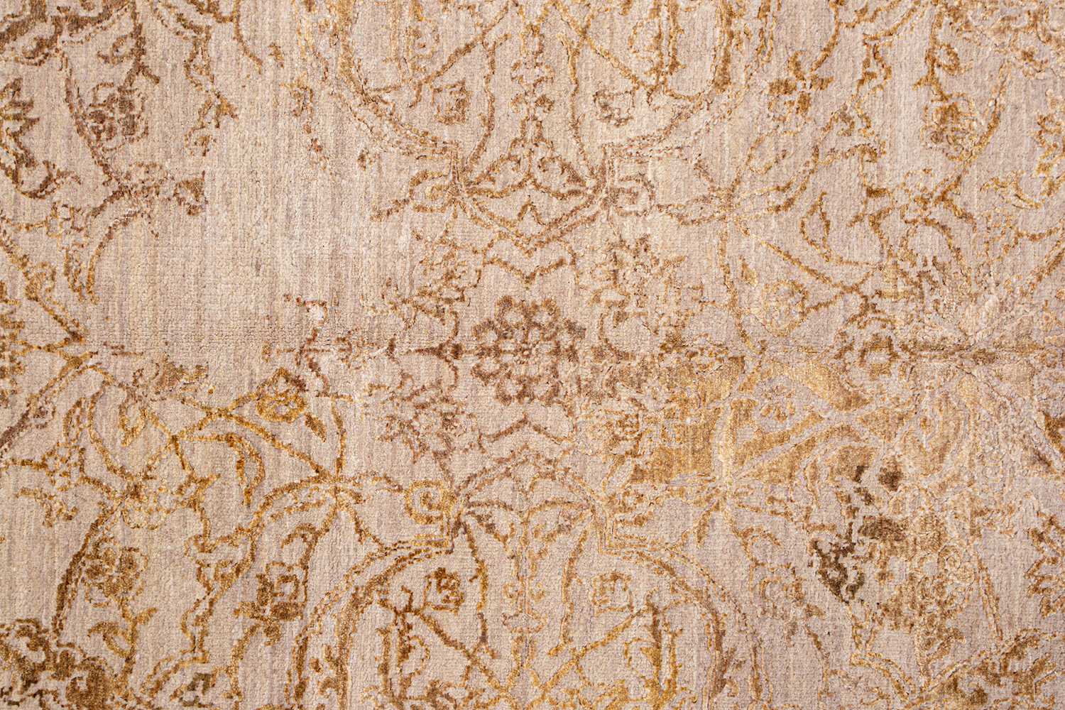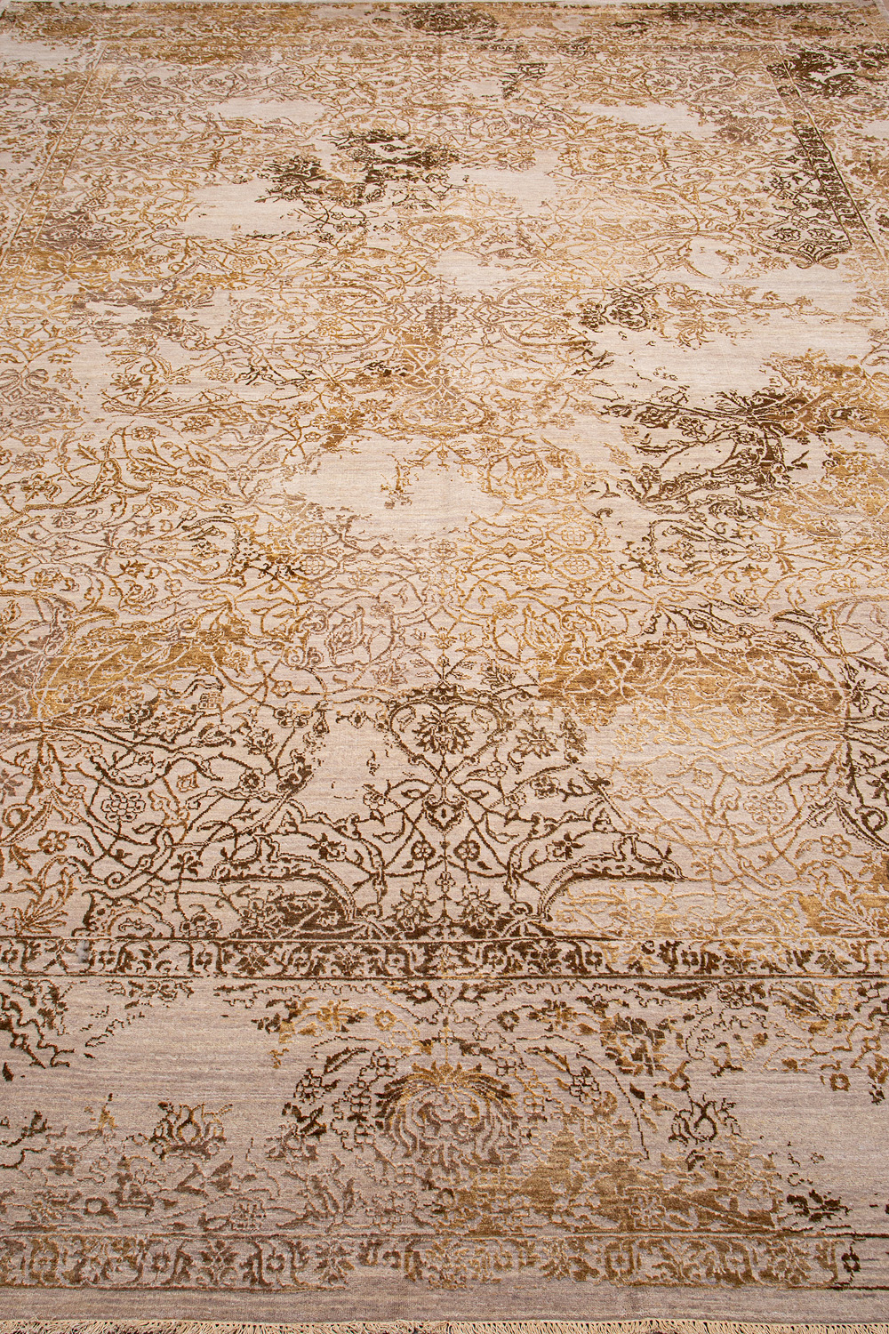 Такой эффект достигается за счет специальной техники плетения, а также обработки, которой подвергают ковры, чтобы они выглядели как антикварные — то есть дорого, элегантно и модно.