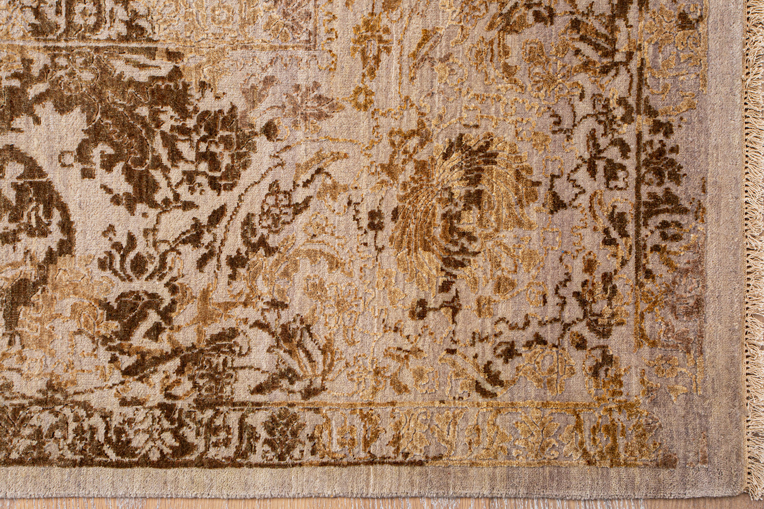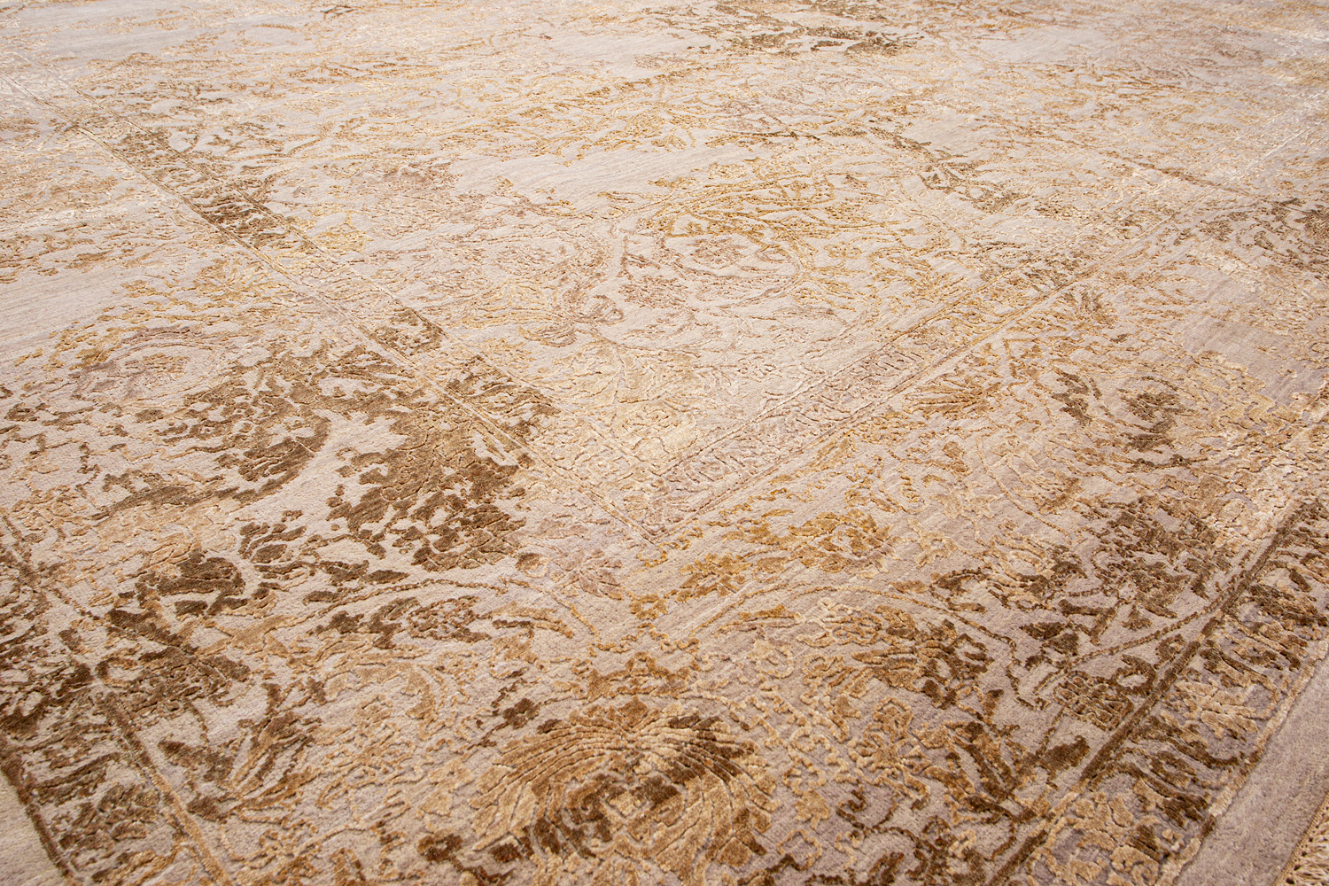 Родина этих ковров Индия. Чтобы создать такое произведение искусства у мастеров уходит от одного года до двух лет. Плотность ковров, в зависимости от размера, составляет от 250 000 до 400 000 узлов на квадратный метр.