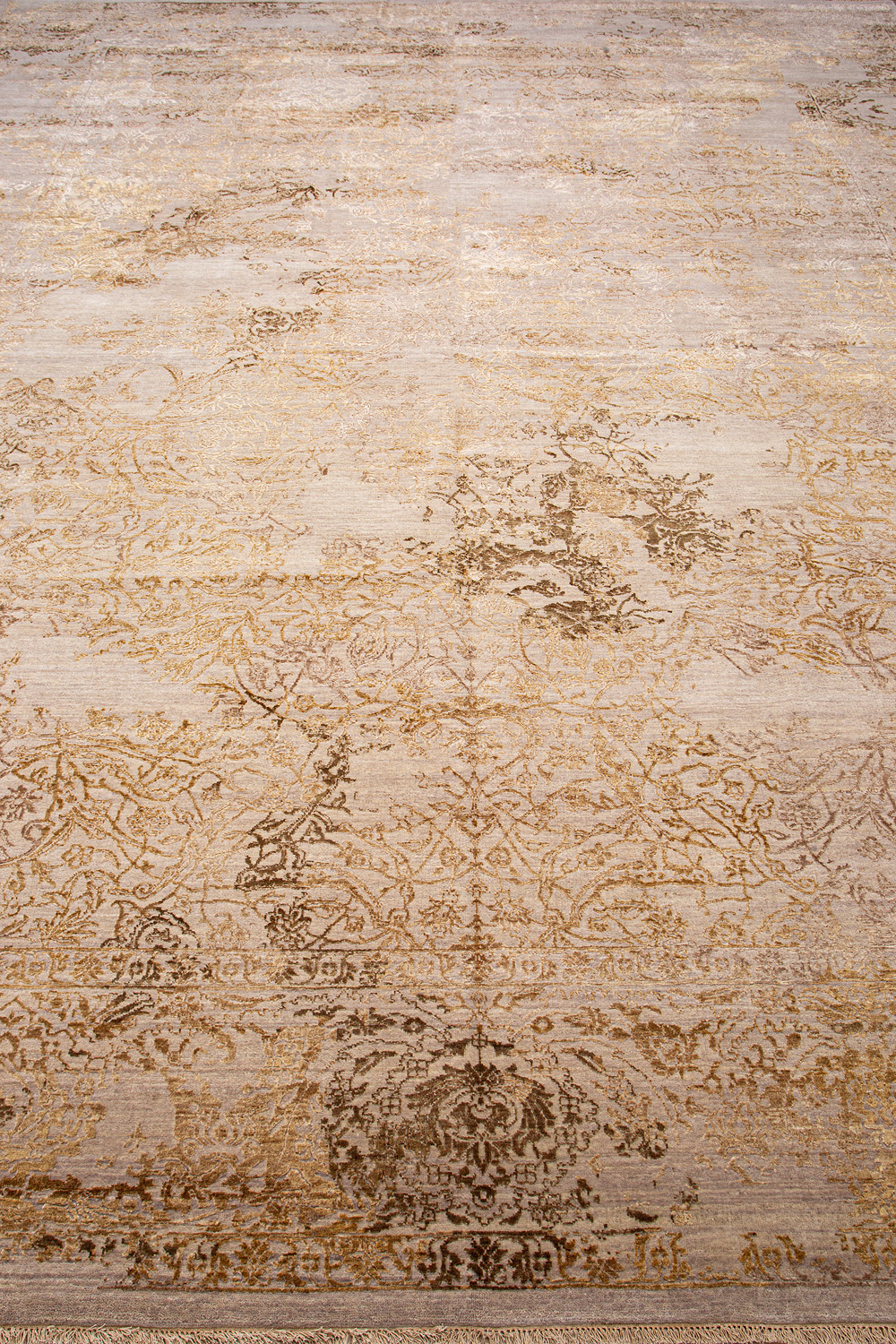 Время и природа — два главных стержня. Впечатление такое, что краски словно стёрлись, а если они и сохраняют яркость, то рисунок сохранился не весь, какие‑то фрагменты утрачены — такова типология этого столь актуального сегодня ковра ручной работы из коллекции illusion.