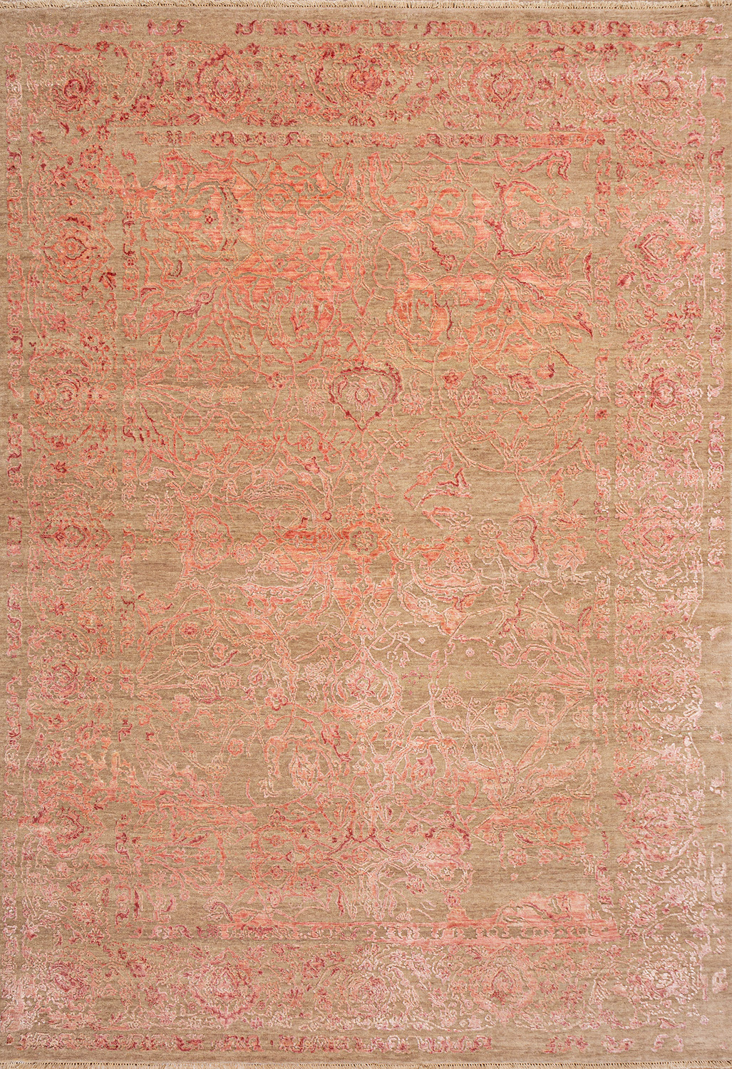 Время и природа — два главных стержня. Впечатление такое, что краски словно стёрлись, а если они и сохраняют яркость, то рисунок сохранился не весь, какие‑то фрагменты утрачены — такова типология этого столь актуального сегодня ковра ручной работы из коллекции illusion.