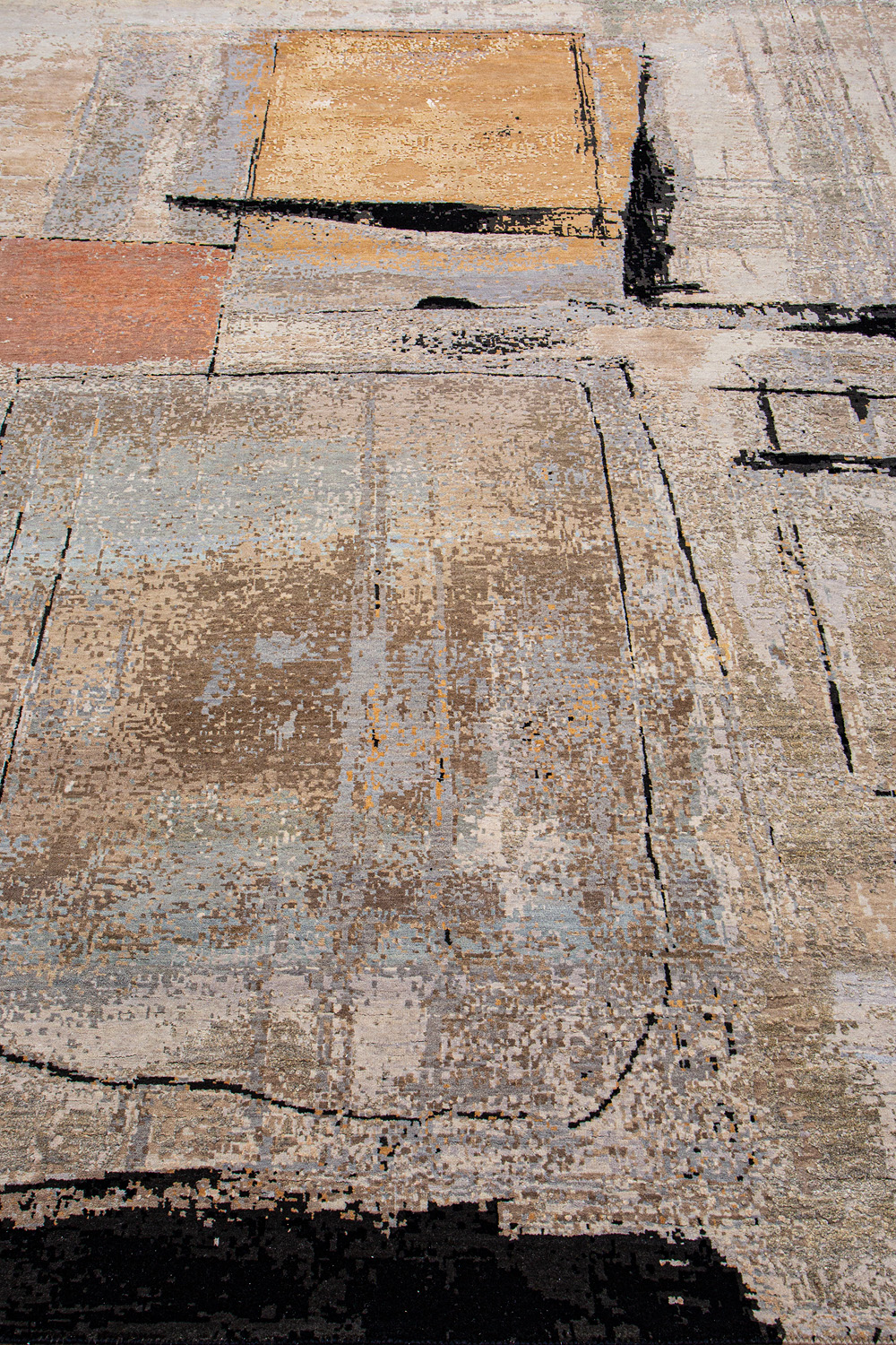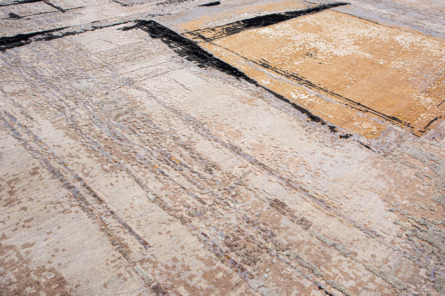 Дизайн ковров напоминает современные полотна художников-абстракционистов и производит столь же яркое и незабываемое впечатление в интерьере. Живописный эффект и необычная фактура зависят от выбора материала: натуральной шерсти, шёлка и от их сочетаний друг с другом. Ковры ткутся вручную в лучших мастерских Индии и Пакистана.
