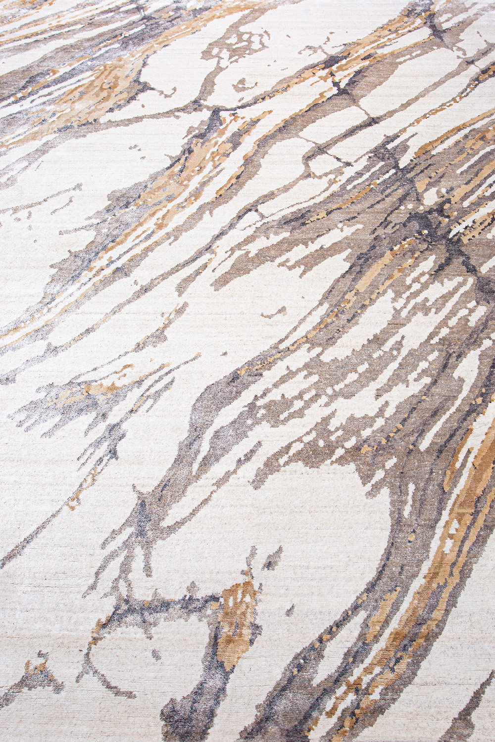 Дизайн ковров напоминает современные полотна художников-абстракционистов и производит столь же яркое и незабываемое впечатление в интерьере. Живописный эффект и необычная фактура зависят от выбора материала: натуральной шерсти, шёлка и от их сочетаний друг с другом. Ковры ткутся вручную в лучших мастерских Индии и Пакистана.