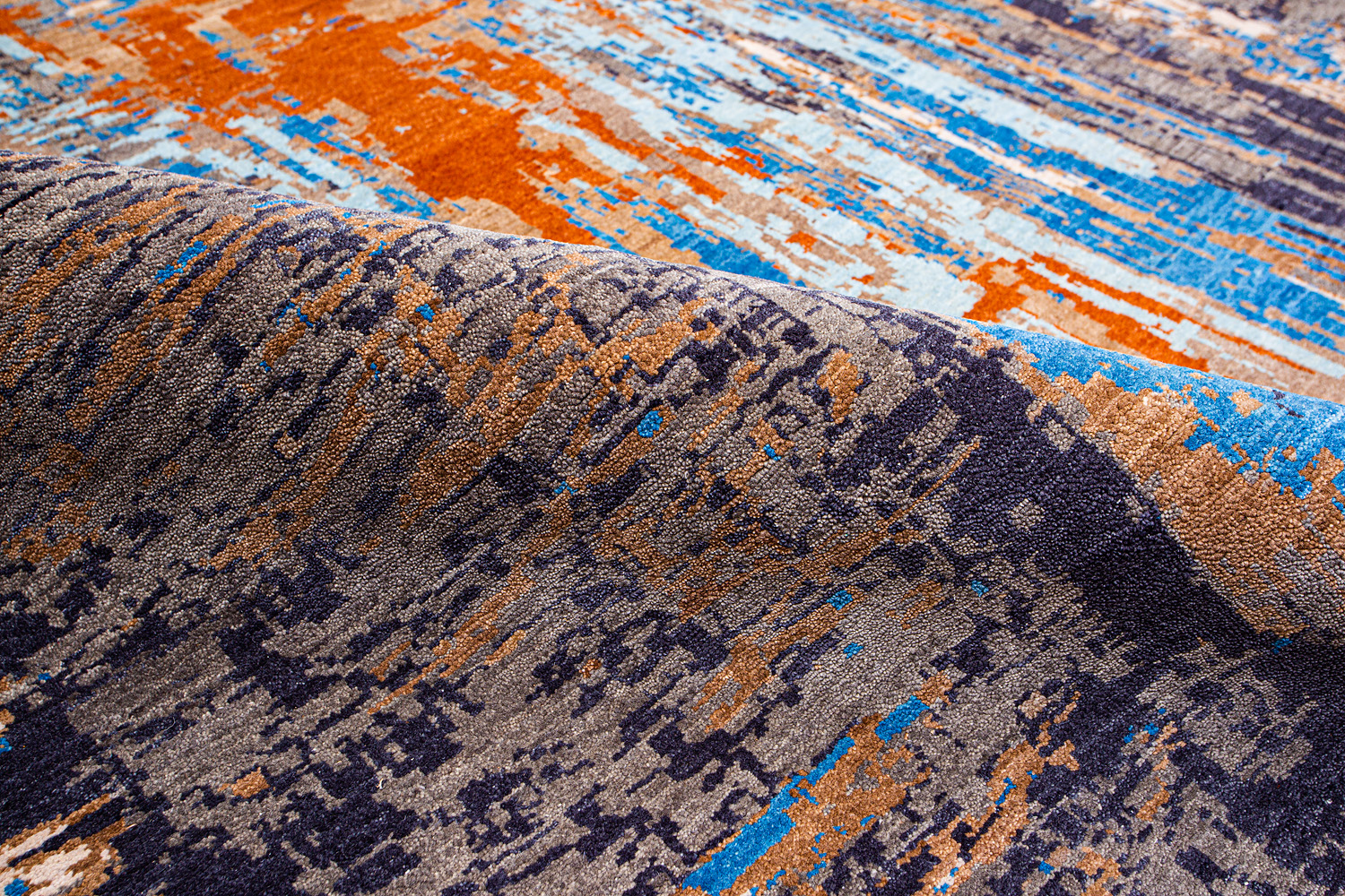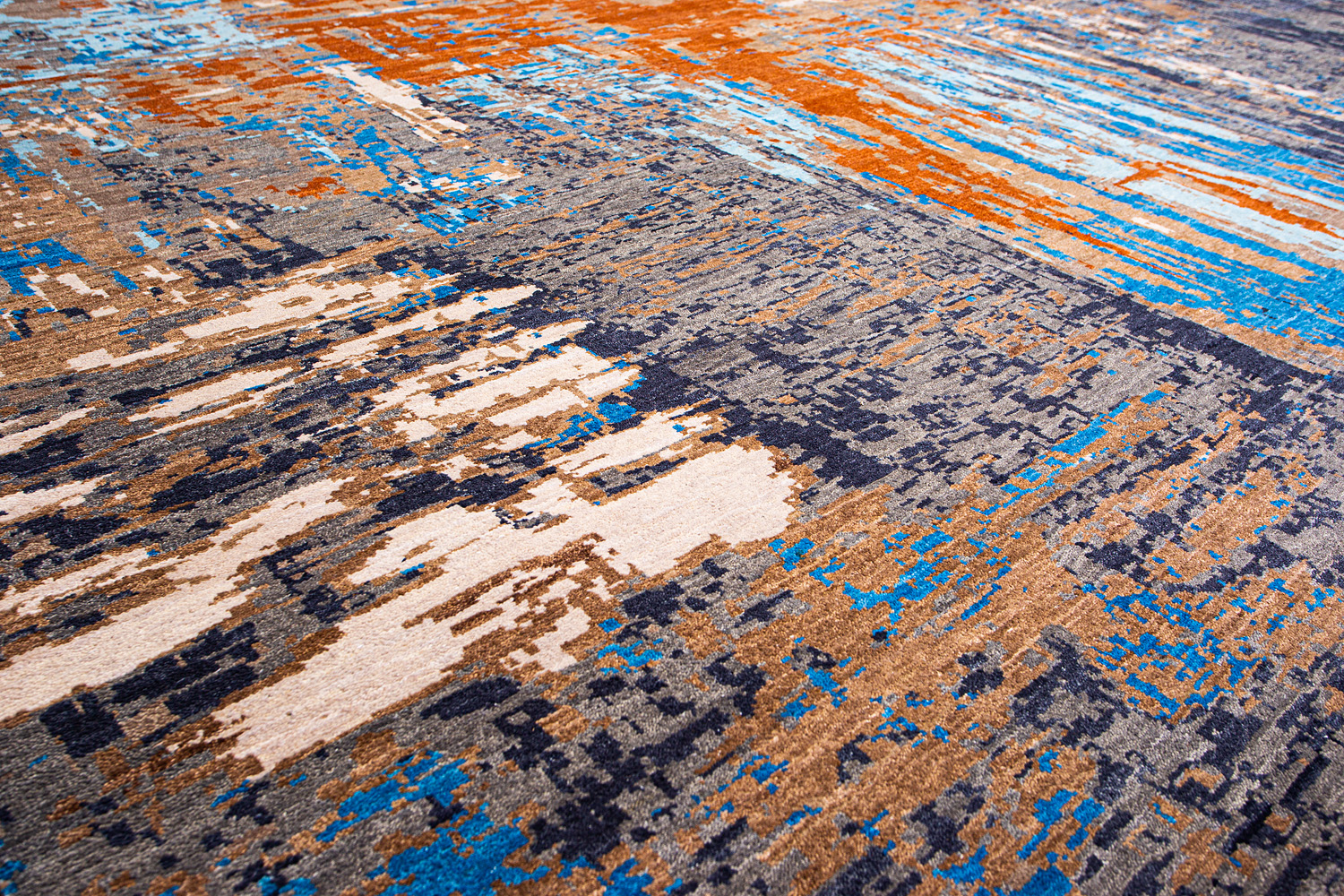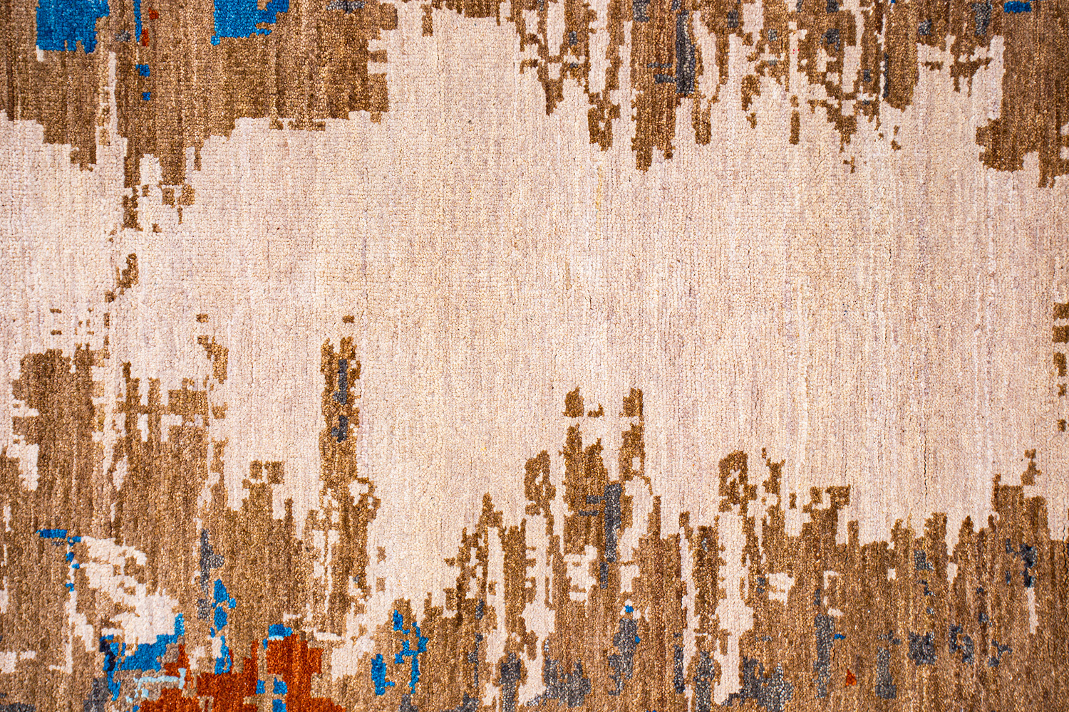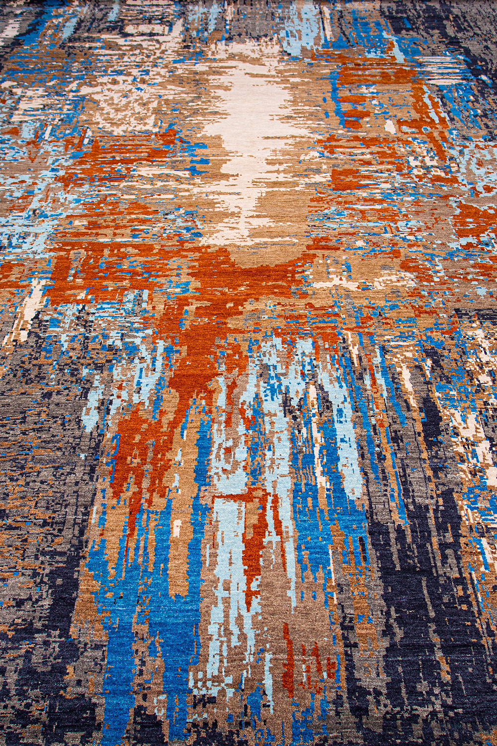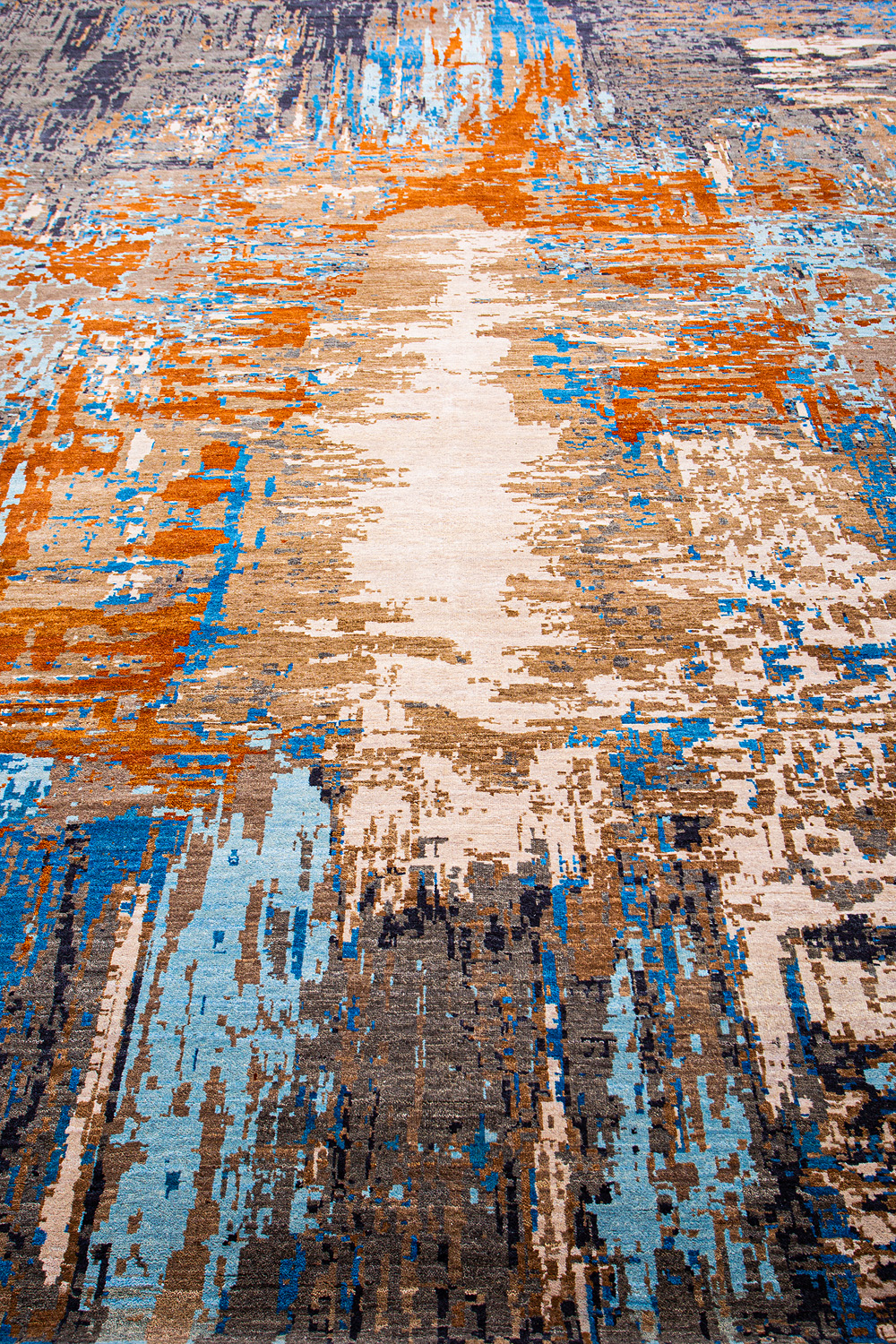 Дизайн ковров напоминает современные полотна художников-абстракционистов и производит столь же яркое и незабываемое впечатление в интерьере. Живописный эффект и необычная фактура зависят от выбора материала: натуральной шерсти, шёлка и от их сочетаний друг с другом. Ковры ткутся вручную в лучших мастерских Индии и Пакистана.
