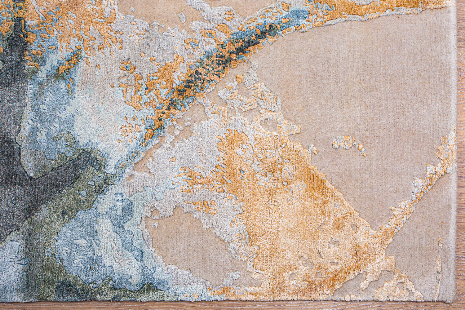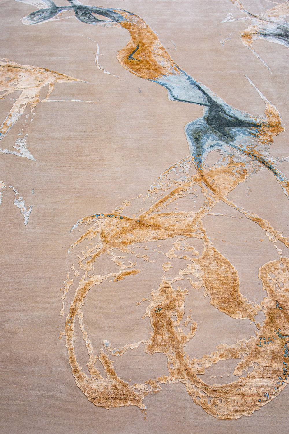 Дизайн ковров напоминает современные полотна художников-абстракционистов и производит столь же яркое и незабываемое впечатление в интерьере. Живописный эффект и необычная фактура зависят от выбора материала: натуральной шерсти, шёлка и от их сочетаний друг с другом. Ковры ткутся вручную в лучших мастерских Индии и Пакистана.