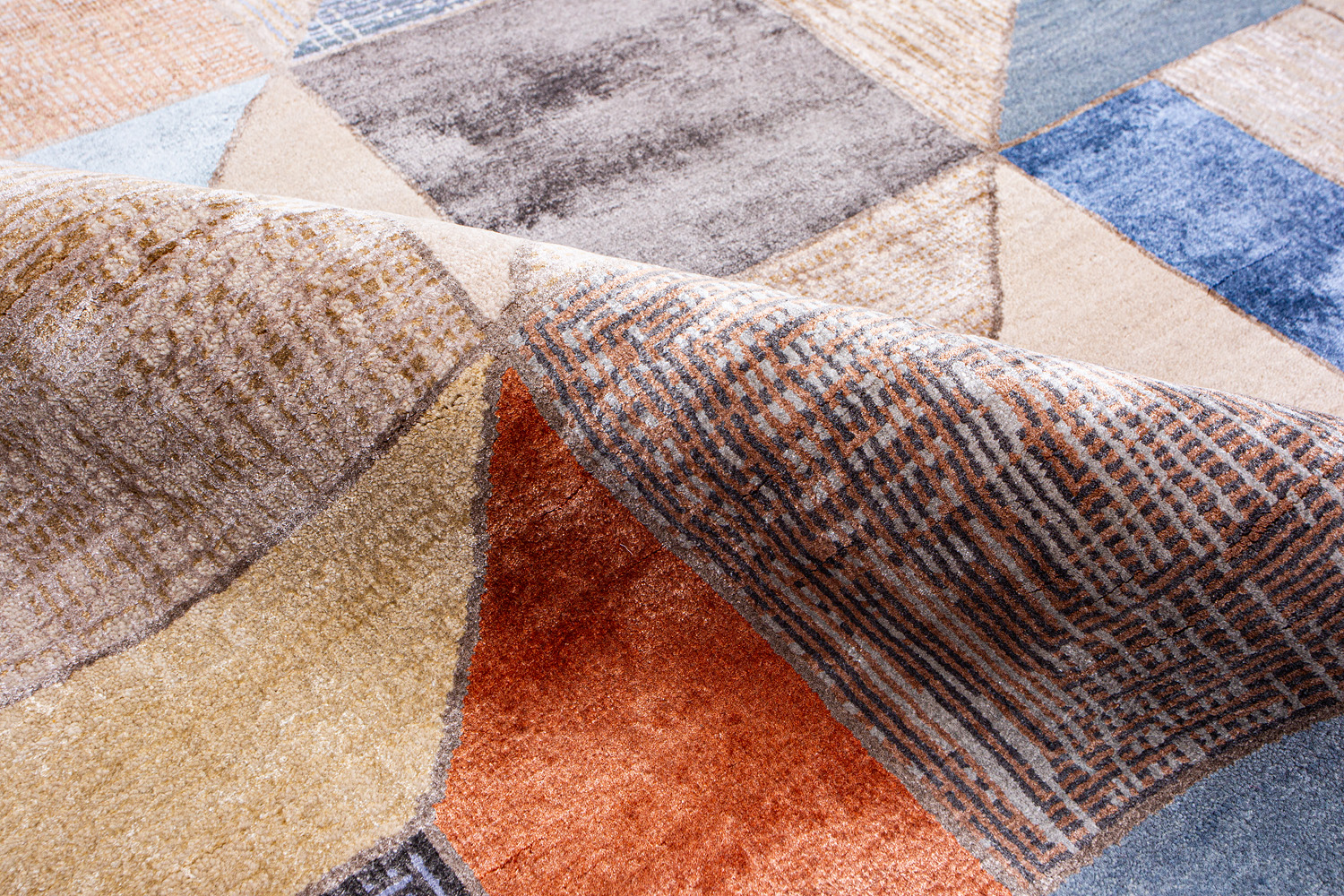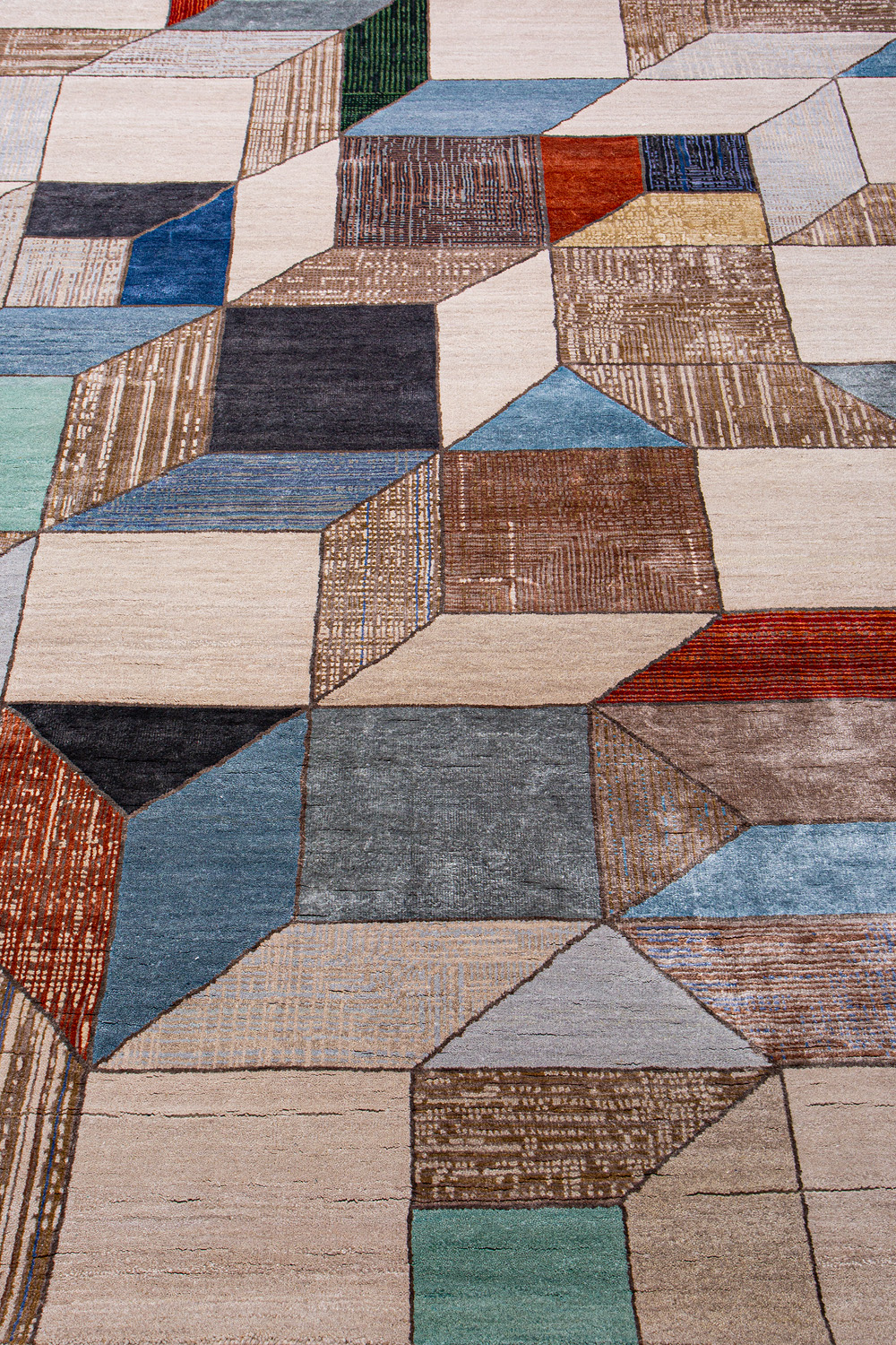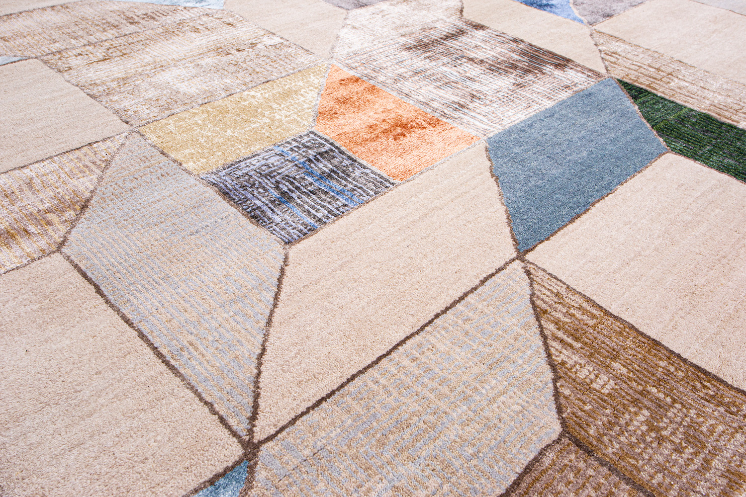 Крупные рисунки в виде линий и фигур на фактурной поверхности ковра превращаются в выразительные композиции. Они акцентируют на себе внимание и добавляют динамики в современный интерьер. Комбинации разных фигур и повторяющийся орнамент задают ритмическую основу пространству, привносят в него оригинальные оптические иллюзии.