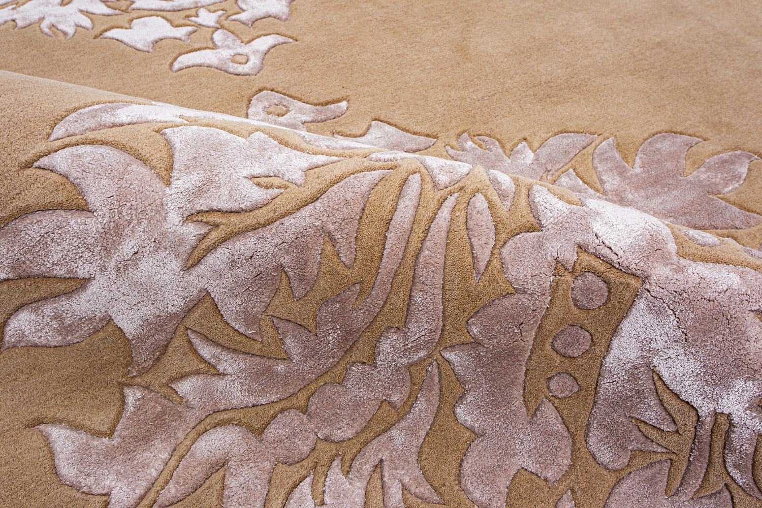 Ковры изготовлены методом ручного тафтинга. Эта технология позволяет создавать объемный рисунок и мягкие переходы цвета. Почитатели коллекции Shine ценят богатую фактуру ковров в сочетании с натуральными материалами и превосходной техникой в исполнении индийских мастеров.