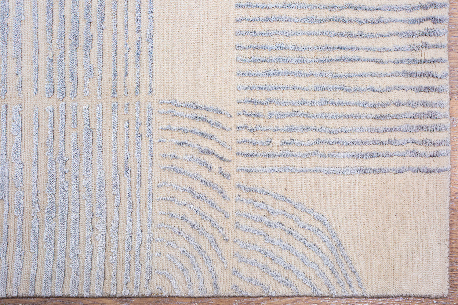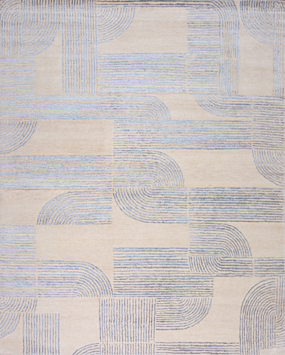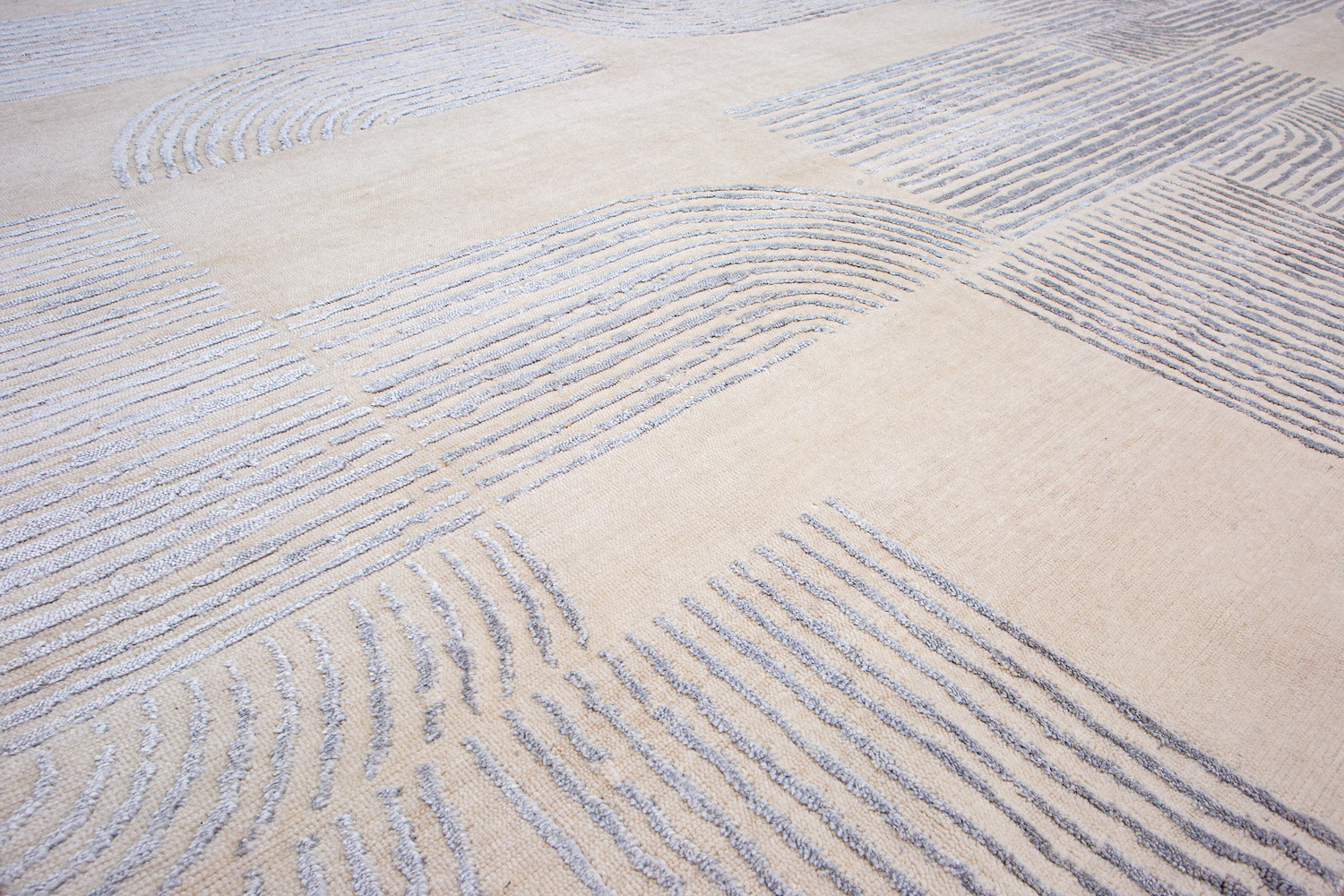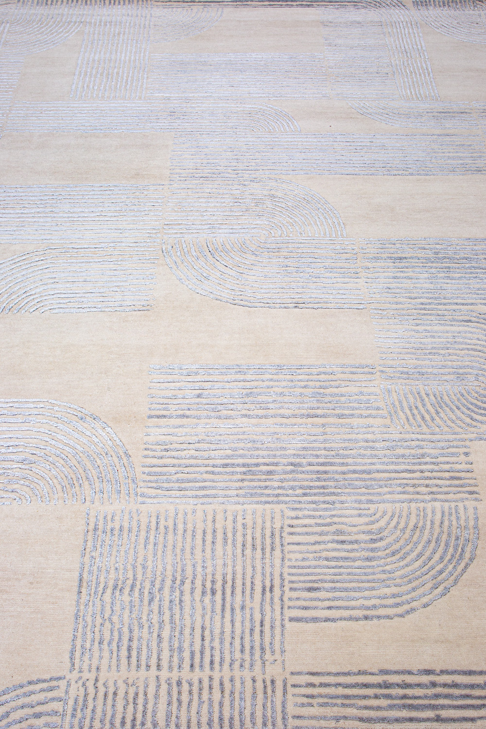 Крупные рисунки в виде линий и фигур на фактурной поверхности ковра превращаются в выразительные композиции. Они акцентируют на себе внимание и добавляют динамики в современный интерьер. Комбинации разных фигур и повторяющийся орнамент задают ритмическую основу пространству, привносят в него оригинальные оптические иллюзии.