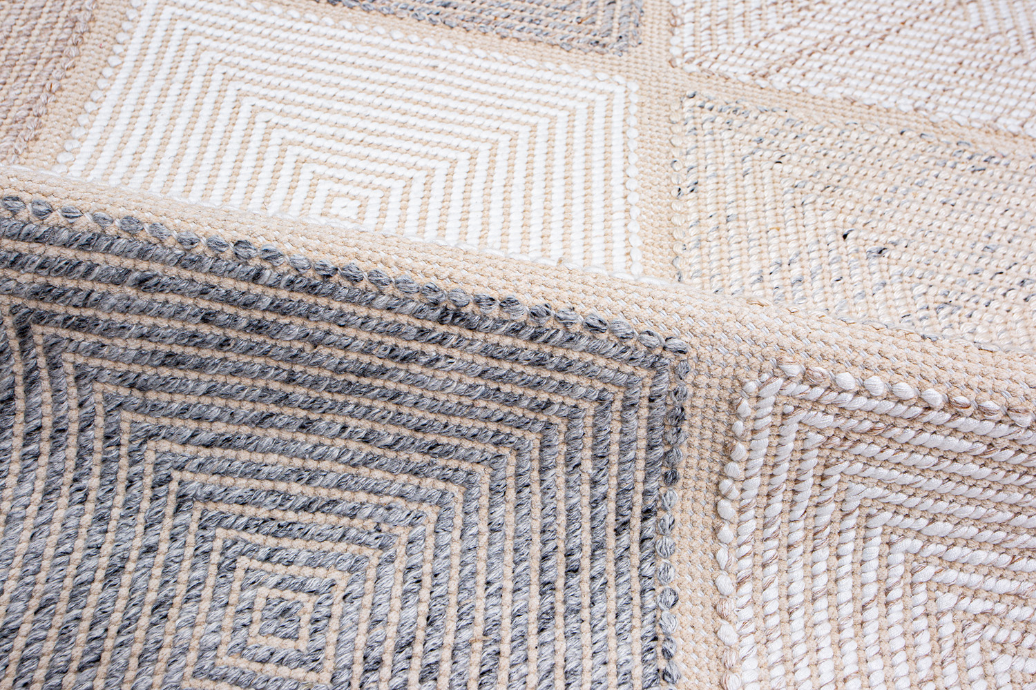 Узор ковров из коллекции Килим создаётся взаимодействием нитей утока и нитей основы, благодаря чему получается геометрический узор.