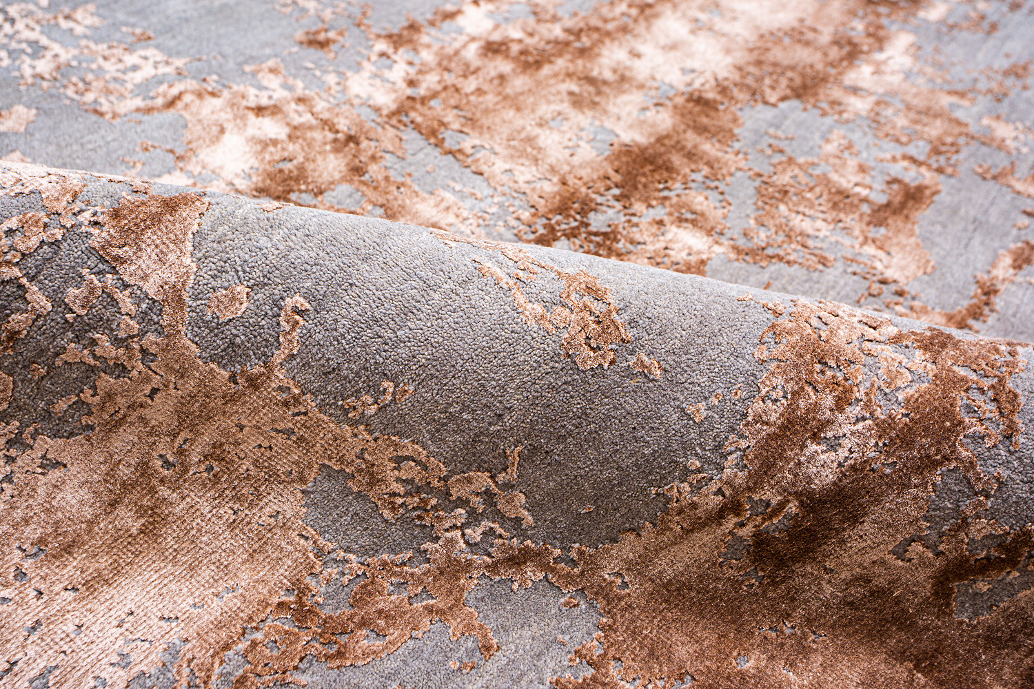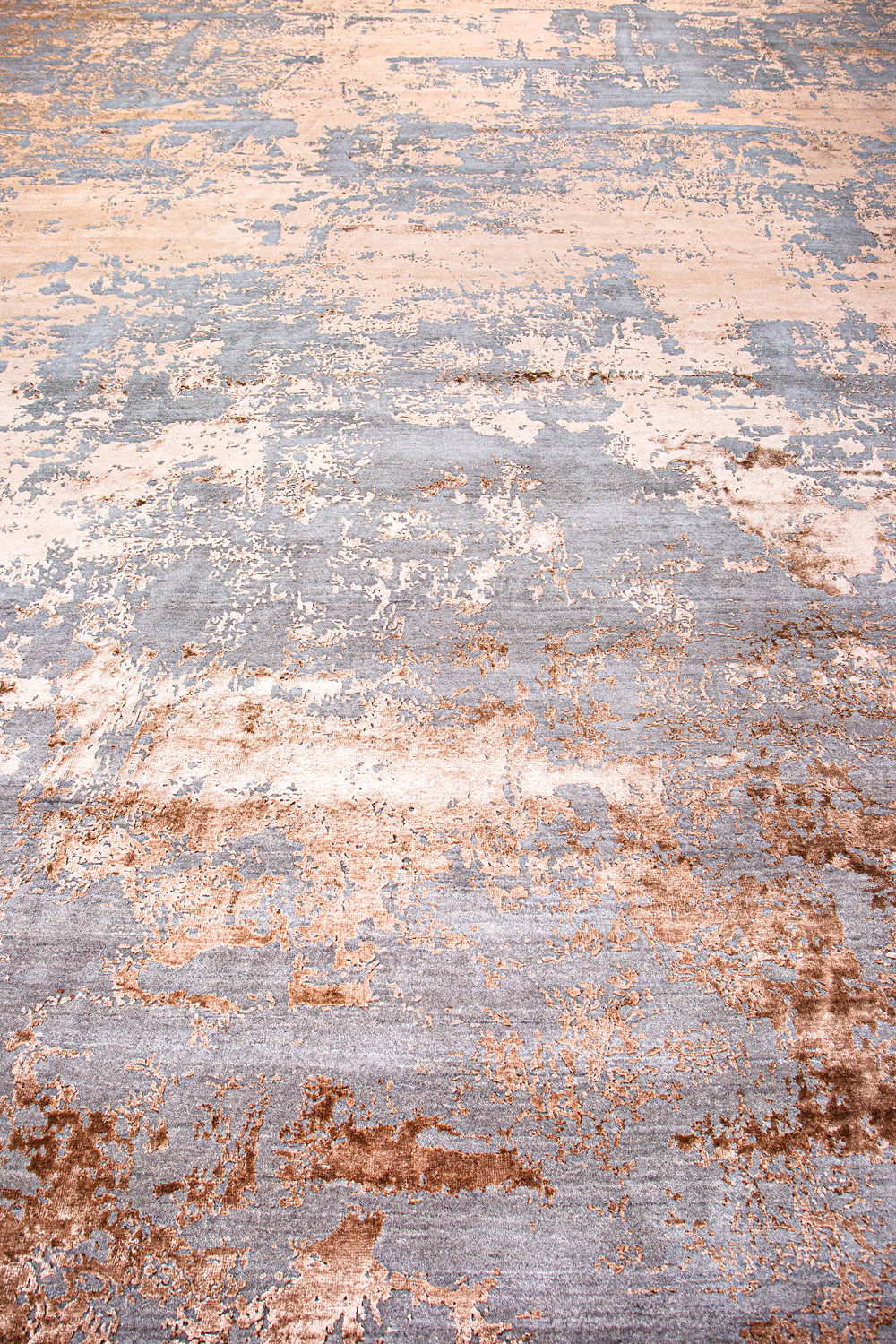 Дизайн ковров напоминает современные полотна художников-абстракционистов и производит столь же яркое и незабываемое впечатление в интерьере. Живописный эффект и необычная фактура зависят от выбора материала: натуральной шерсти, шёлка и от их сочетаний друг с другом. Ковры ткутся вручную в лучших мастерских Индии и Пакистана.