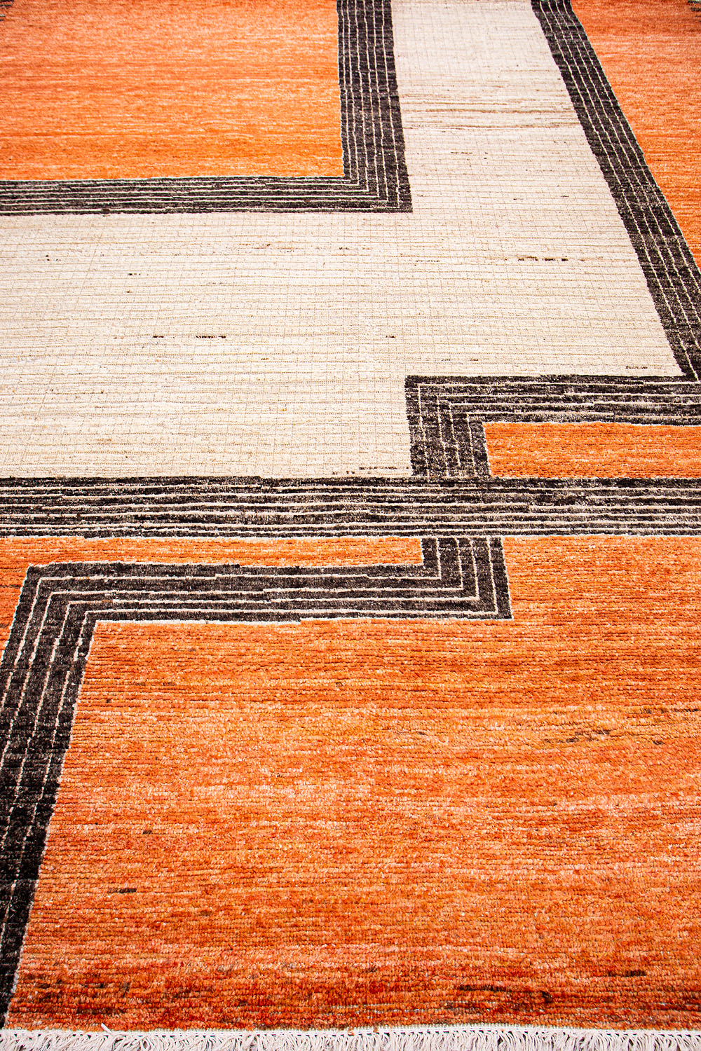 Крупные рисунки в виде линий и фигур на фактурной поверхности ковра превращаются в выразительные композиции. Они акцентируют на себе внимание и добавляют динамики в современный интерьер. Комбинации разных фигур и повторяющийся орнамент задают ритмическую основу пространству, привносят в него оригинальные оптические иллюзии.