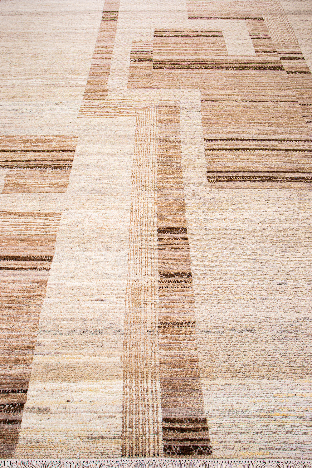 Крупные рисунки в виде линий и фигур на фактурной поверхности ковра превращаются в выразительные композиции. Они акцентируют на себе внимание и добавляют динамики в современный интерьер. Комбинации разных фигур и повторяющийся орнамент задают ритмическую основу пространству, привносят в него оригинальные оптические иллюзии.
