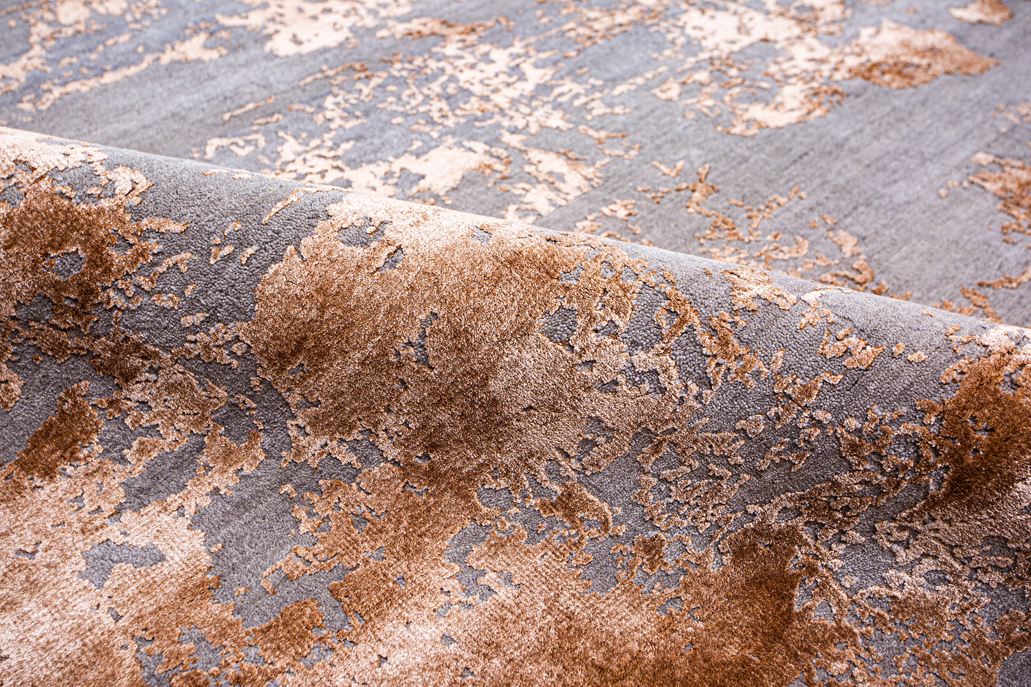 Дизайн ковров напоминает современные полотна художников-абстракционистов и производит столь же яркое и незабываемое впечатление в интерьере. Живописный эффект и необычная фактура зависят от выбора материала: натуральной шерсти, шёлка и от их сочетаний друг с другом. Ковры ткутся вручную в лучших мастерских Индии и Пакистана.