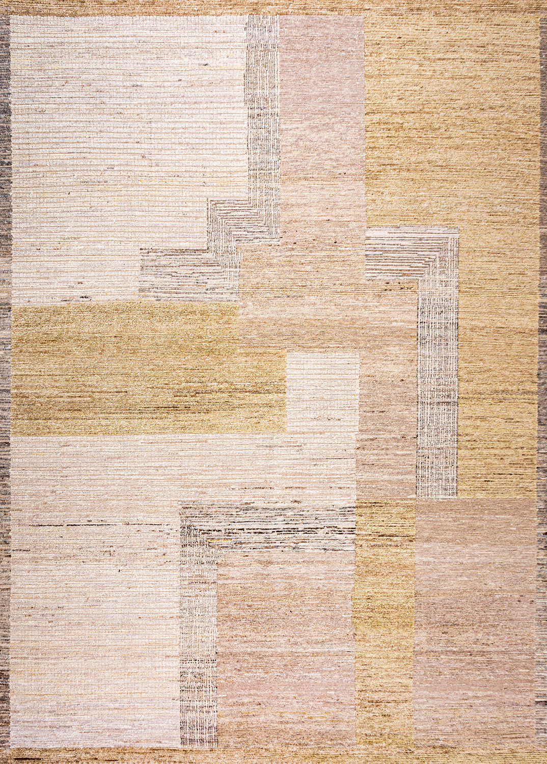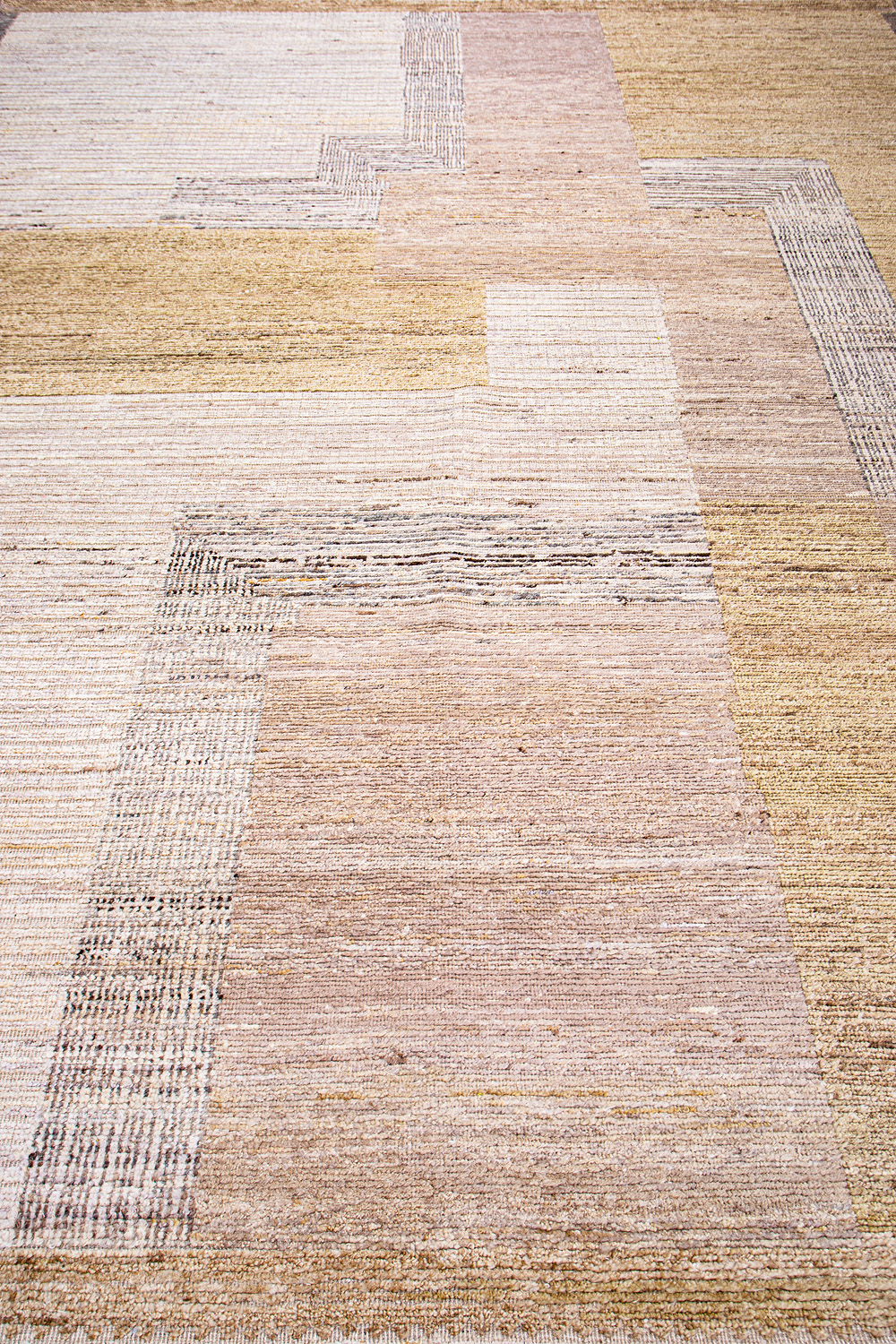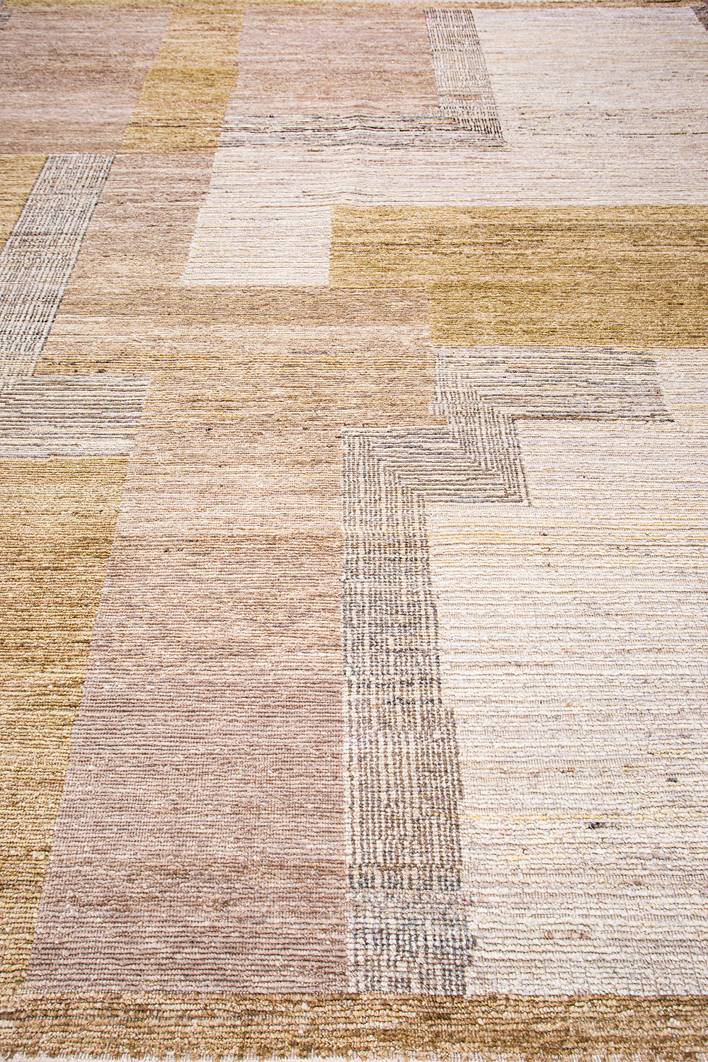 Крупные рисунки в виде линий и фигур на фактурной поверхности ковра превращаются в выразительные композиции. Они акцентируют на себе внимание и добавляют динамики в современный интерьер. Комбинации разных фигур и повторяющийся орнамент задают ритмическую основу пространству, привносят в него оригинальные оптические иллюзии.