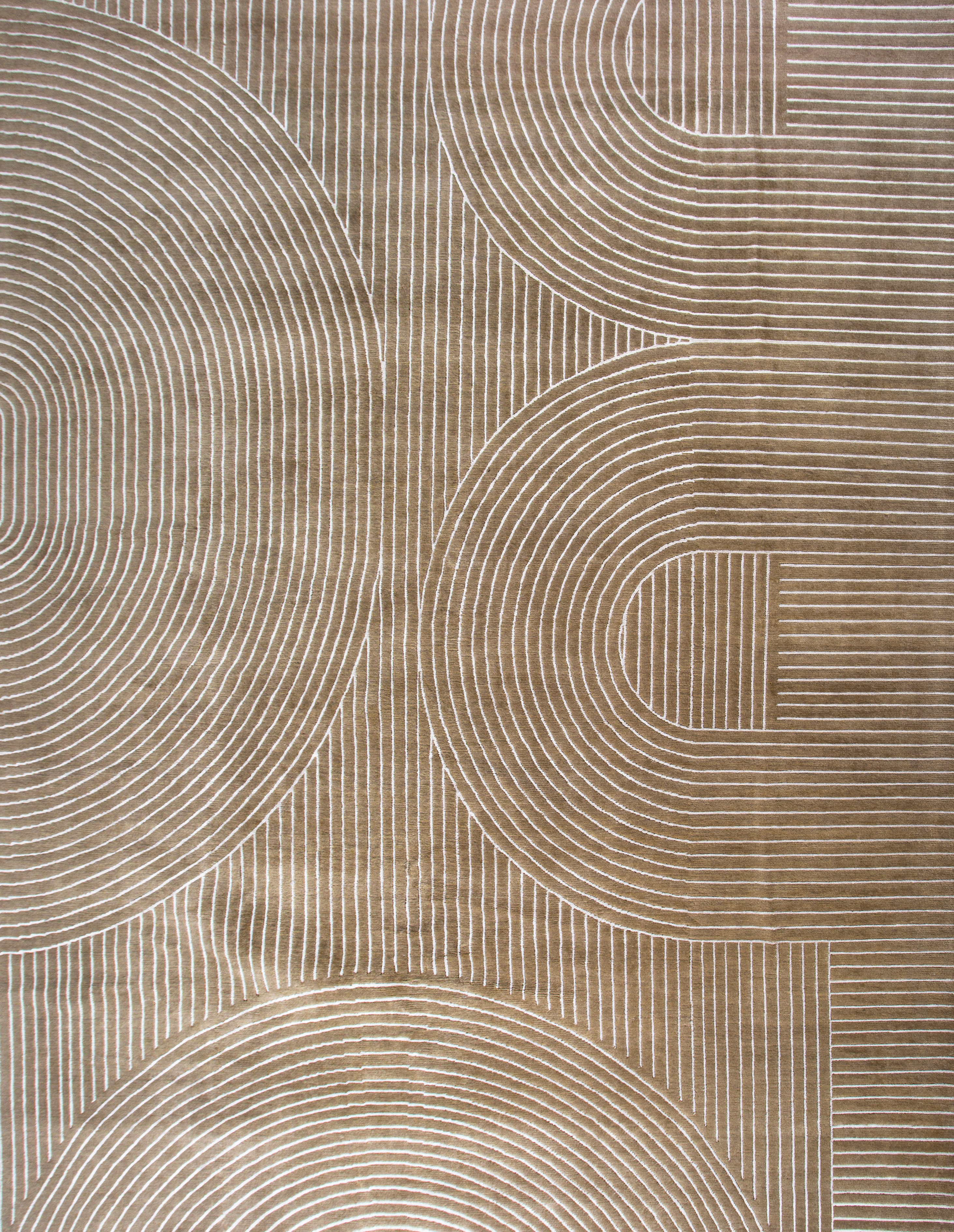 Крупные рисунки в виде линий и фигур на фактурной поверхности ковра превращаются в выразительные композиции. Они акцентируют на себе внимание и добавляют динамики в современный интерьер. Комбинации разных фигур и повторяющийся орнамент задают ритмическую основу пространству, привносят в него оригинальные оптические иллюзии.