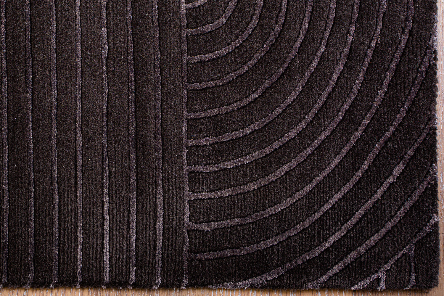 Крупные рисунки в виде линий и фигур на фактурной поверхности ковра превращаются в выразительные композиции. Они акцентируют на себе внимание и добавляют динамики в современный интерьер. Комбинации разных фигур и повторяющийся орнамент задают ритмическую основу пространству, привносят в него оригинальные оптические иллюзии.