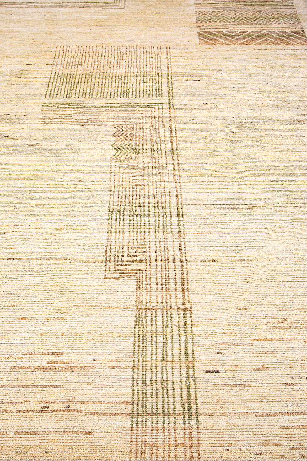 Крупные рисунки в виде линий и фигур на фактурной поверхности ковра превращаются в выразительные композиции. Они акцентируют на себе внимание и добавляют динамики в современный интерьер. Комбинации разных фигур и повторяющийся орнамент задают ритмическую основу пространству, привносят в него оригинальные оптические иллюзии.