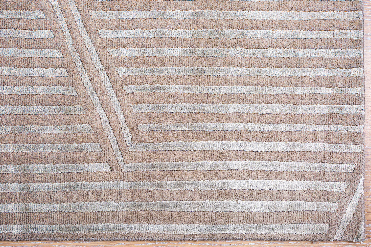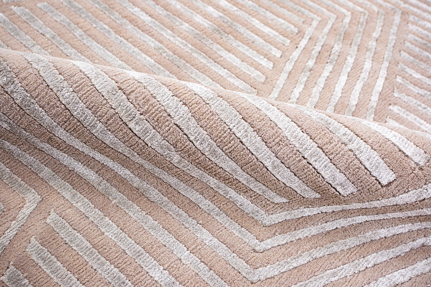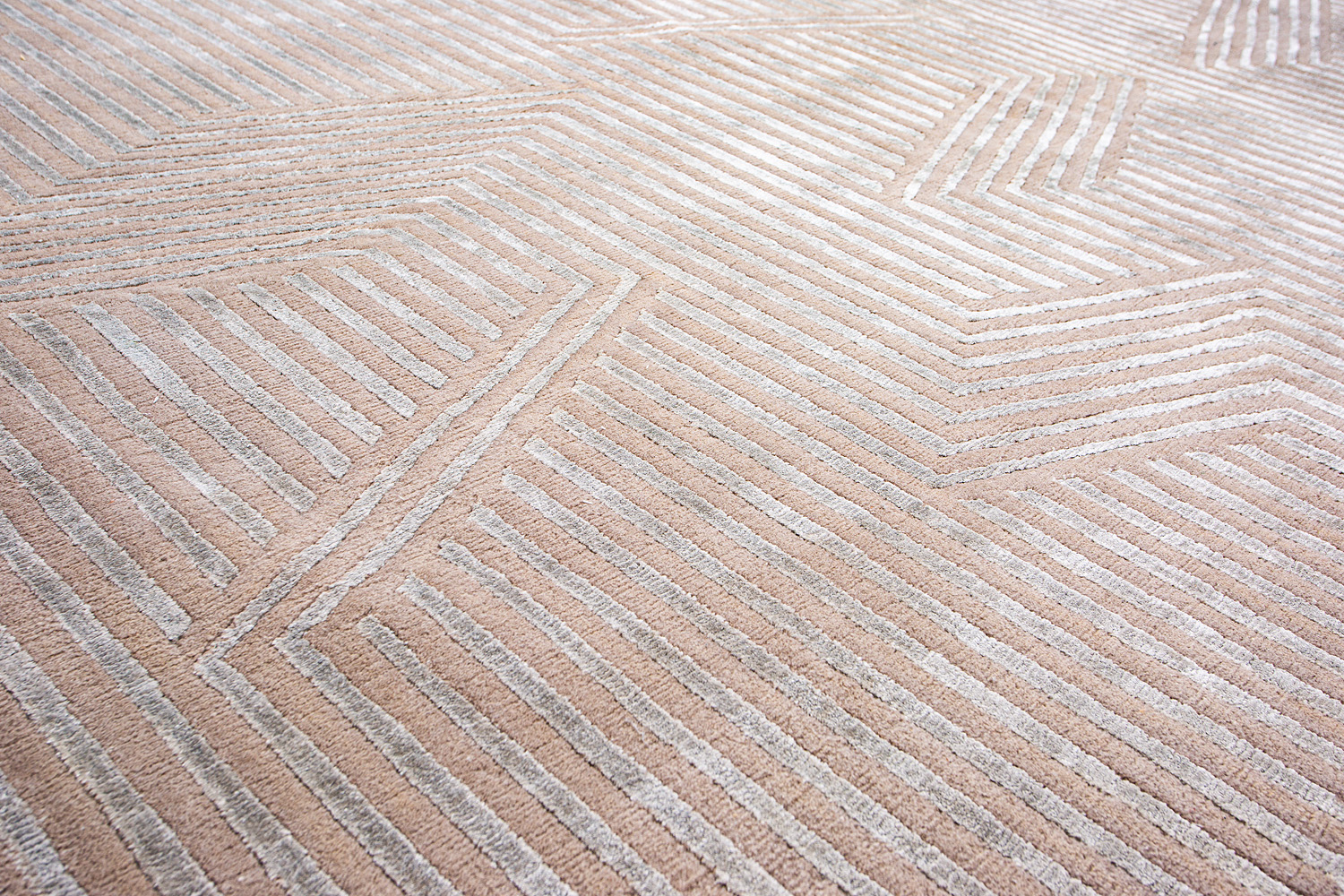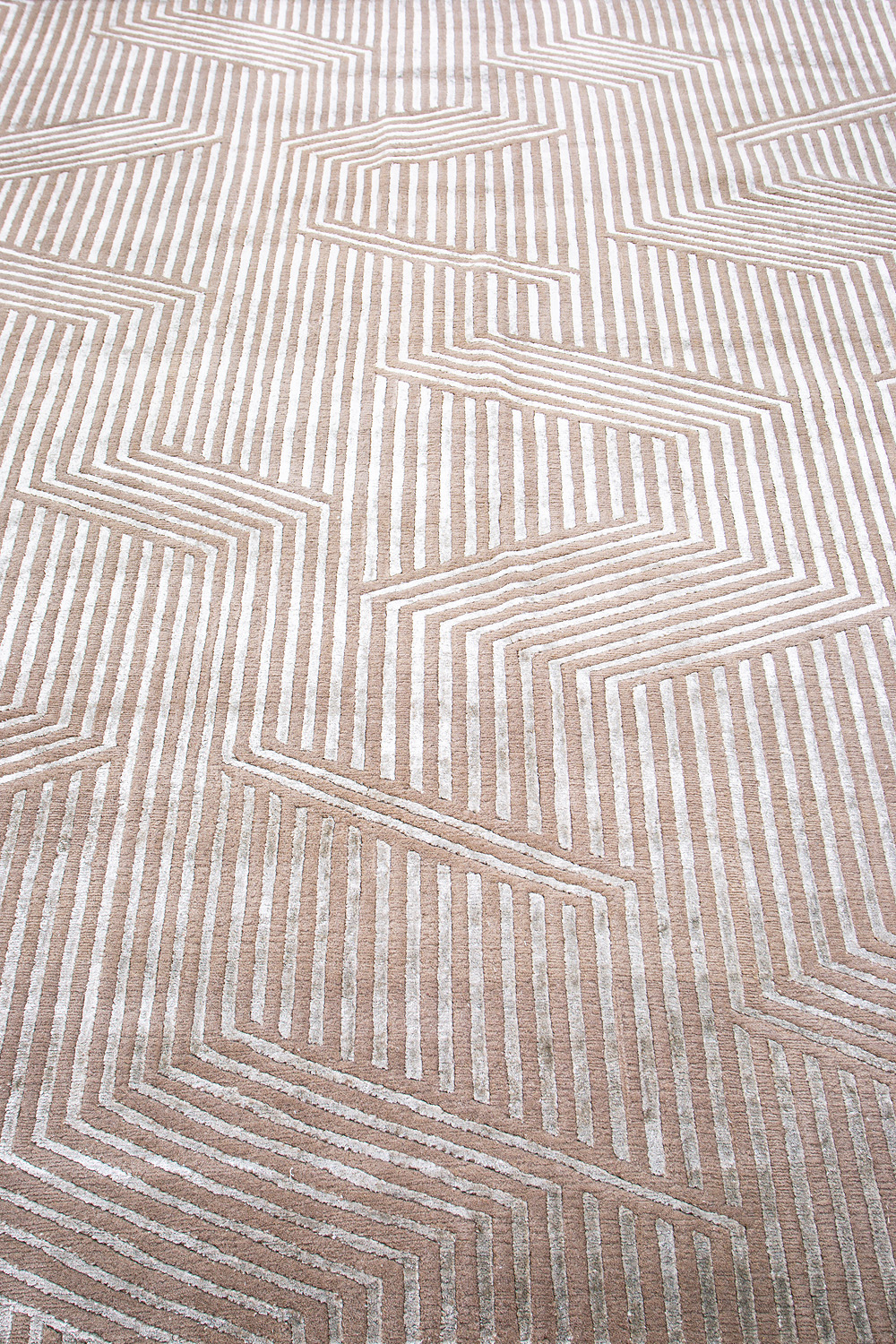 Крупные рисунки в виде линий и фигур на фактурной поверхности ковра превращаются в выразительные композиции. Они акцентируют на себе внимание и добавляют динамики в современный интерьер. Комбинации разных фигур и повторяющийся орнамент задают ритмическую основу пространству, привносят в него оригинальные оптические иллюзии.