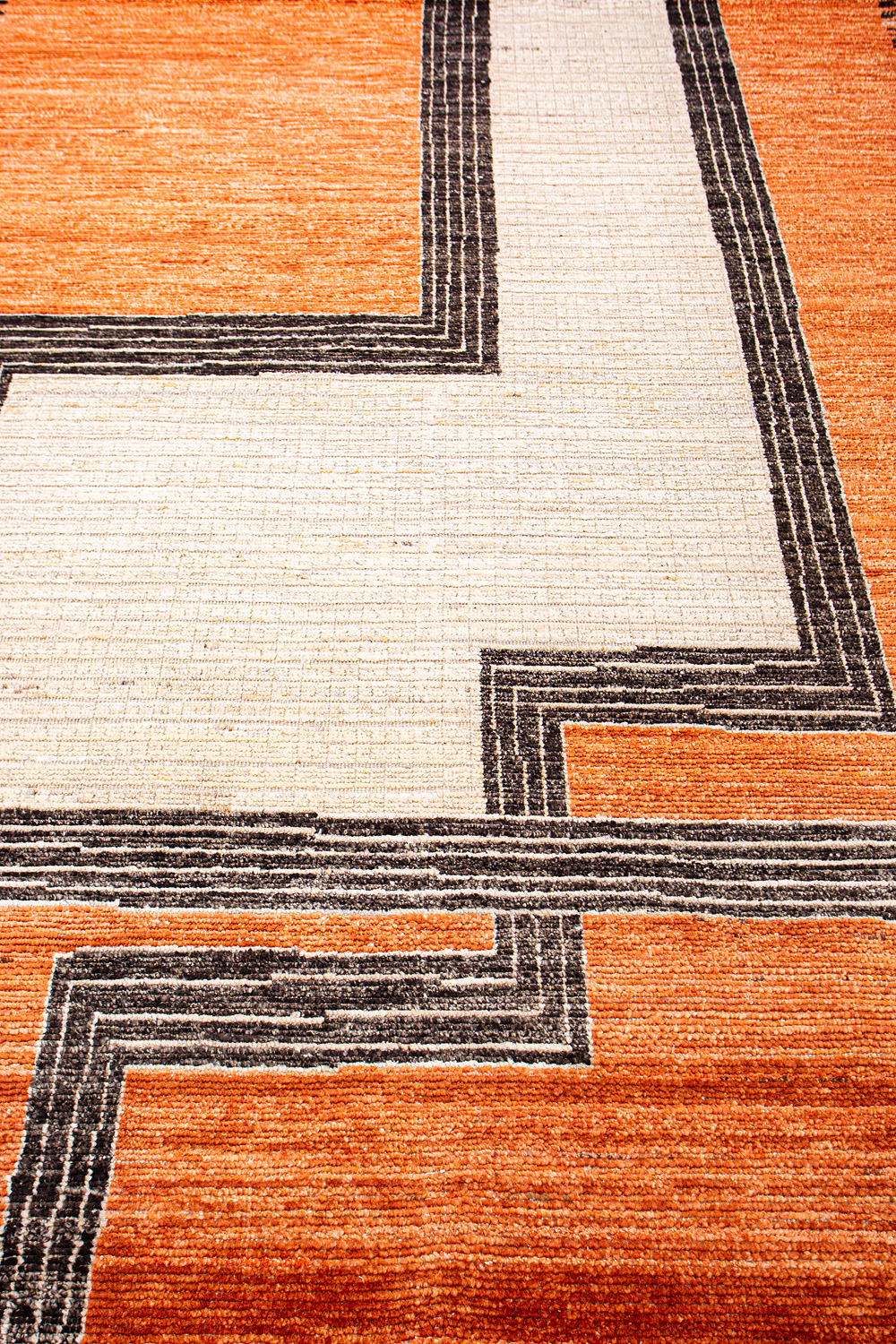 Крупные рисунки в виде линий и фигур на фактурной поверхности ковра превращаются в выразительные композиции. Они акцентируют на себе внимание и добавляют динамики в современный интерьер. Комбинации разных фигур и повторяющийся орнамент задают ритмическую основу пространству, привносят в него оригинальные оптические иллюзии.